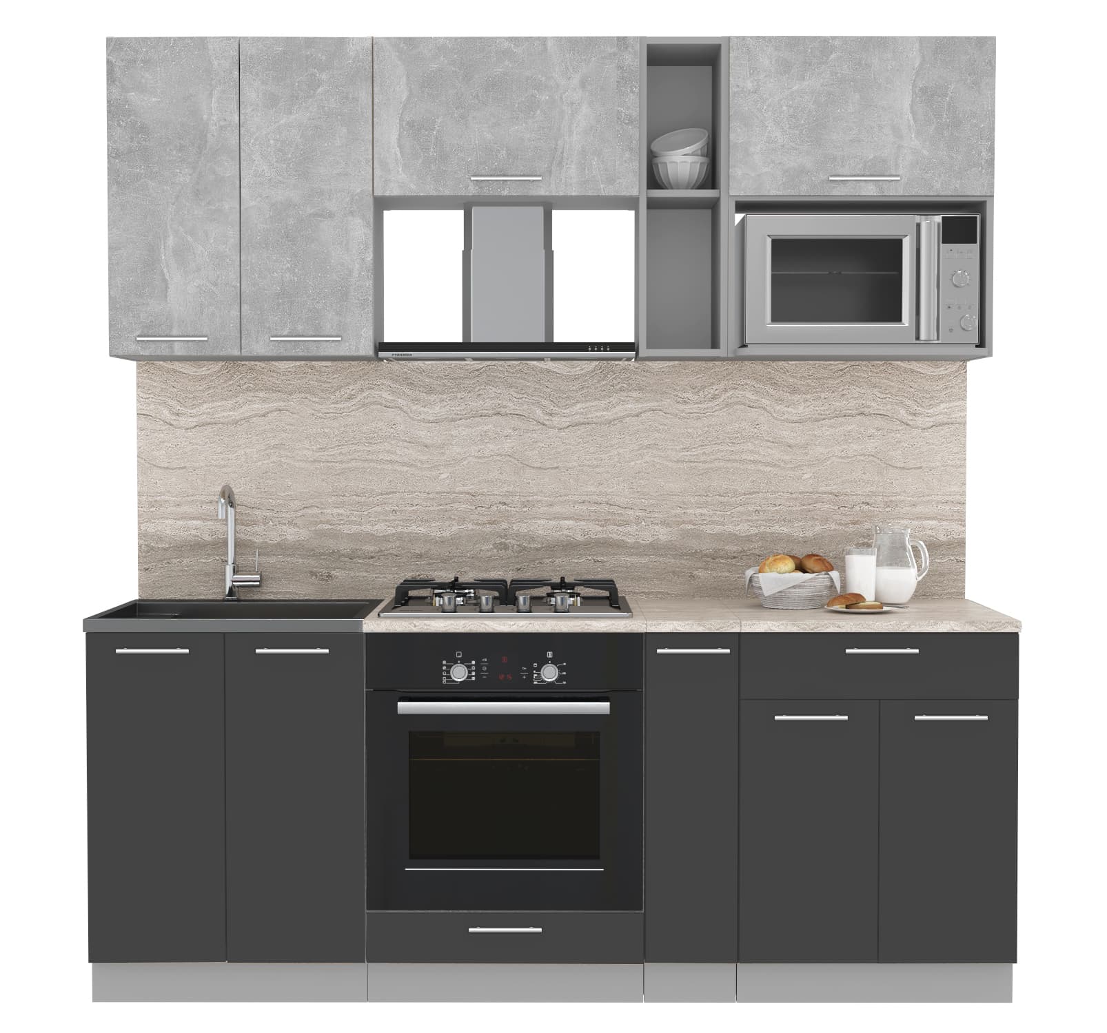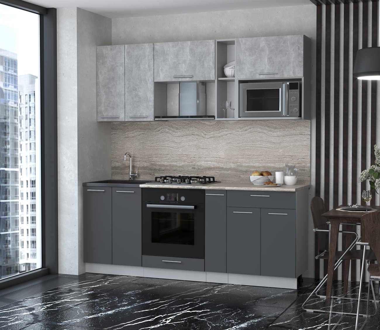 ГОТОВАЯ КУХНЯ МИЛА 2,0 ВТ (БЕТОН/ АНТРАЦИТ)