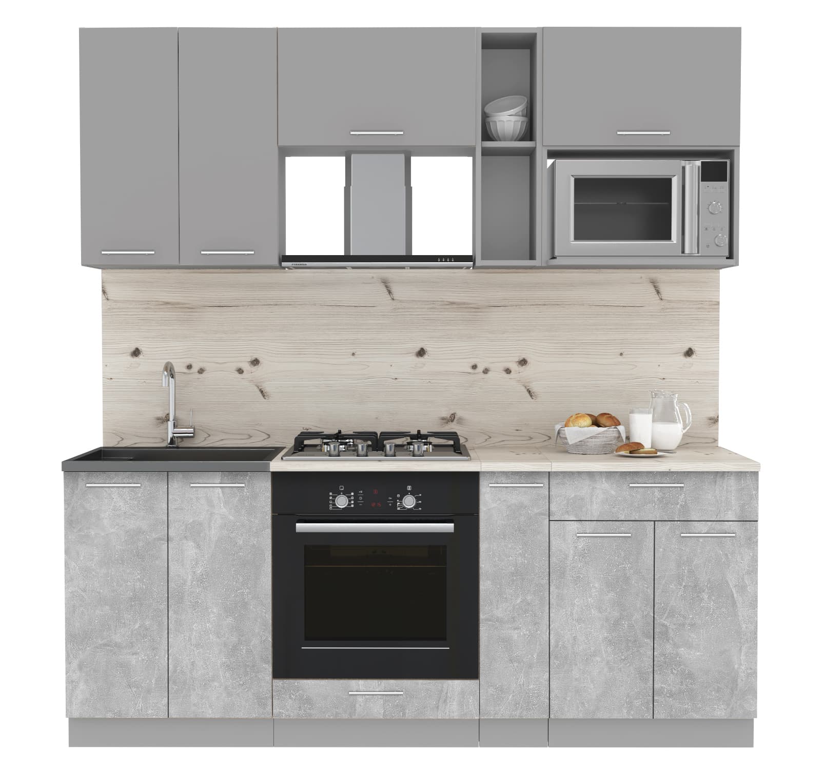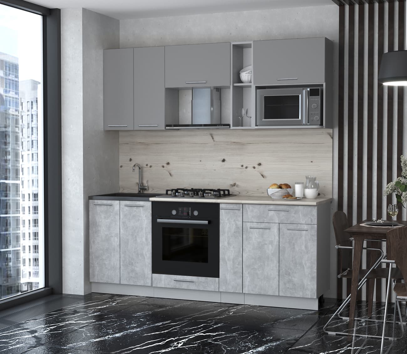 ГОТОВАЯ КУХНЯ МИЛА 2,0 ВТ (СЕРЕБРО/ БЕТОН) - Yuta.by