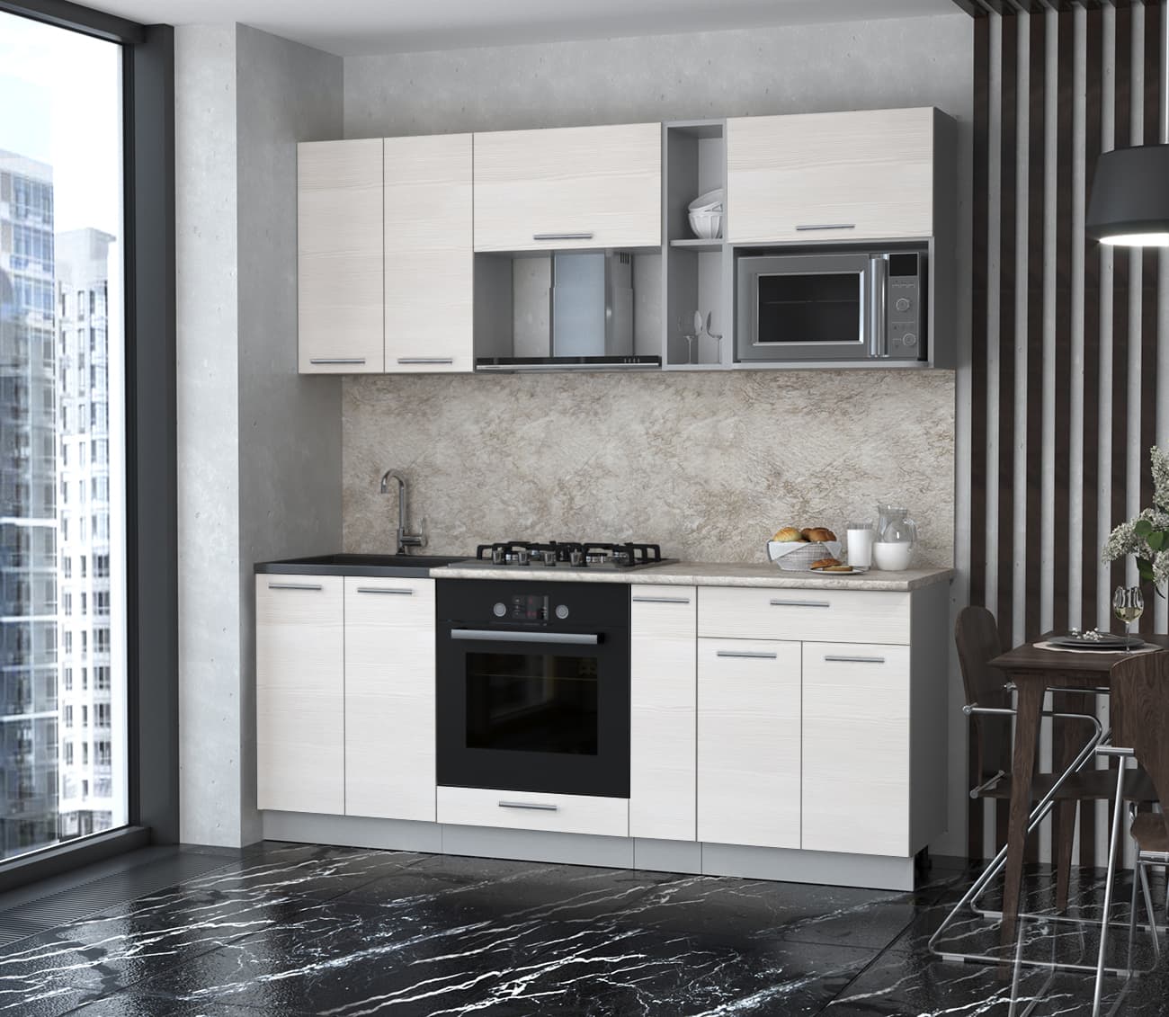 ГОТОВАЯ КУХНЯ МИЛА 2,0 ВТ (ВУДЛАЙН КРЕМОВЫЙ/ ВУДЛАЙН КРЕМОВЫЙ) - Yuta.by