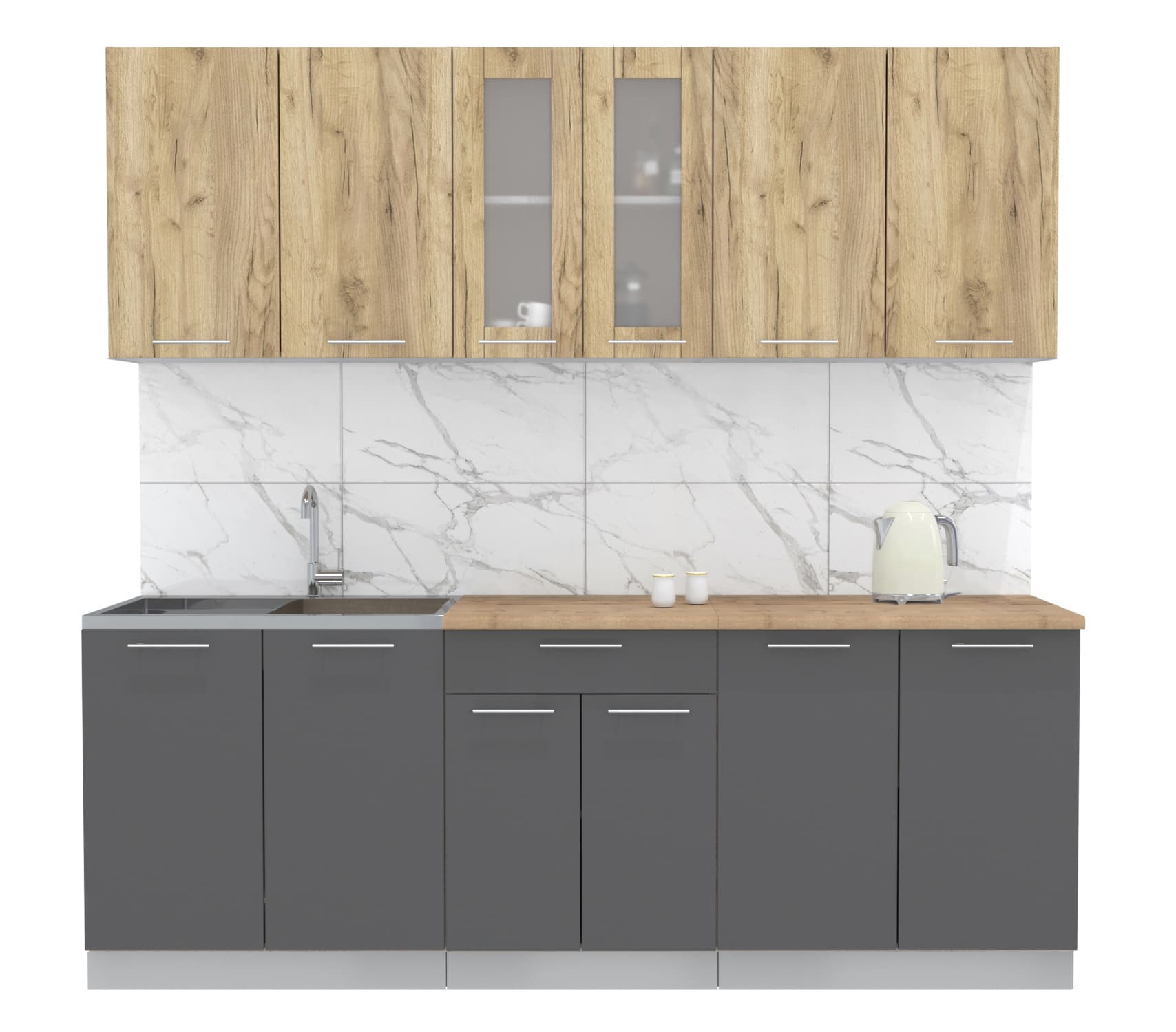 ГОТОВАЯ КУХНЯ МИЛА 2,2 (ДУБ ЗОЛОТОЙ/ АНТРАЦИТ) - Yuta.by