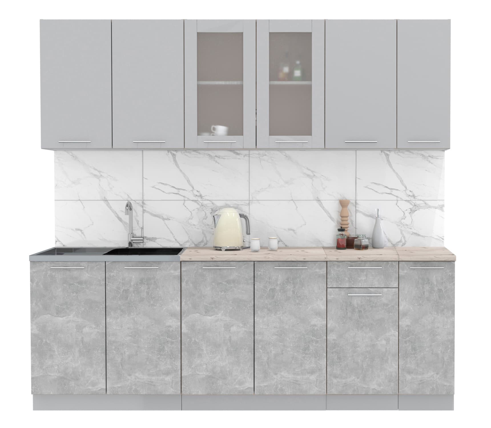 ГОТОВАЯ КУХНЯ МИЛА 2,2 (СЕРЕБРО/ БЕТОН) - Yuta.by