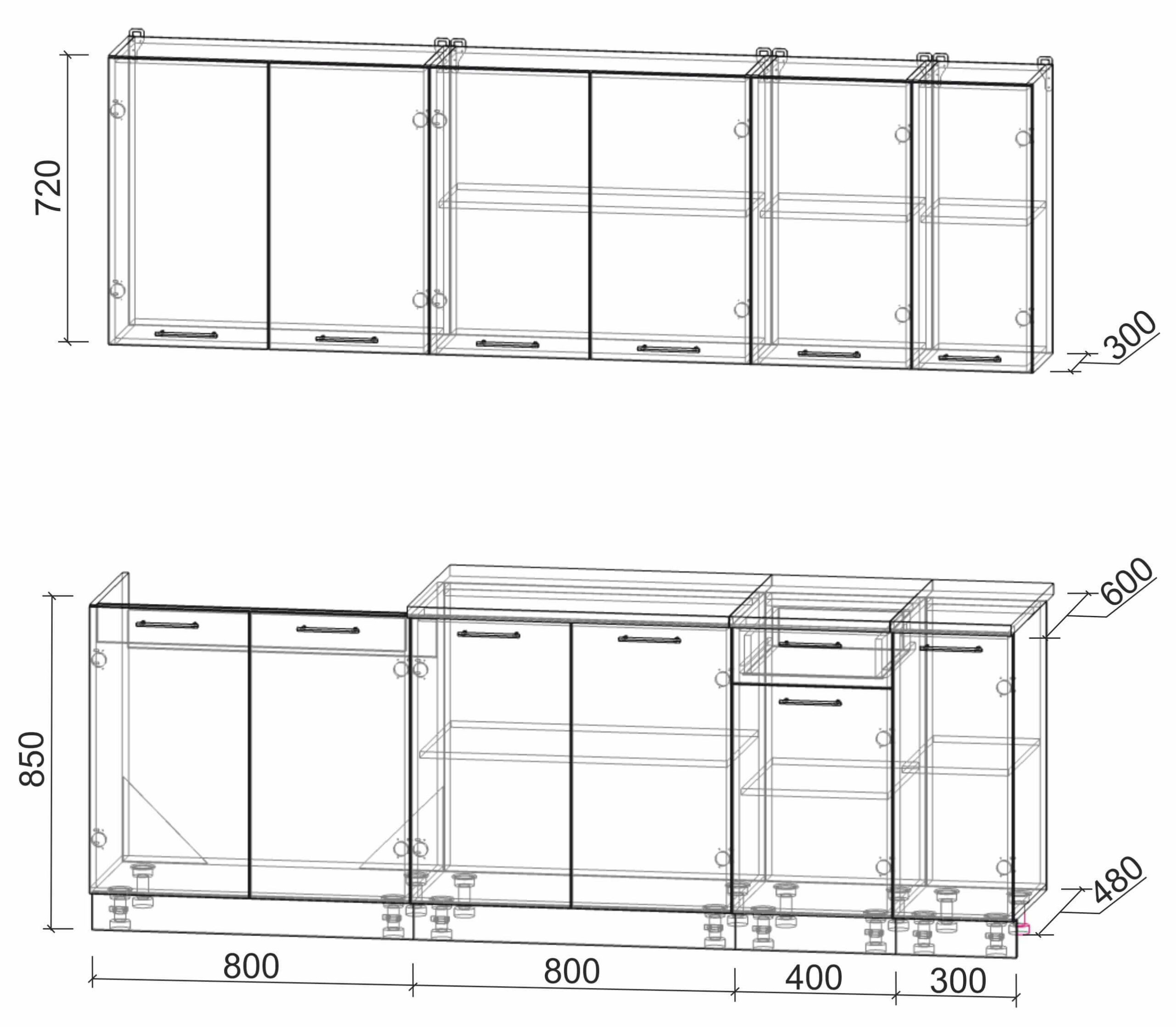 Высота нижних шкафов
