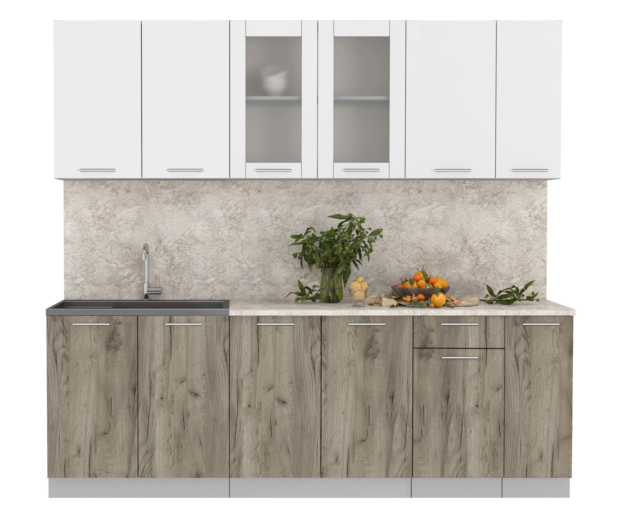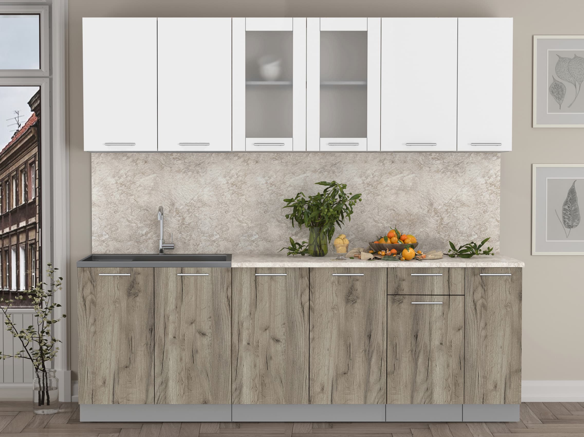 ГОТОВАЯ КУХНЯ МИЛА 2,3 (БЕЛЫЙ/ ДУБ СЕРЫЙ)