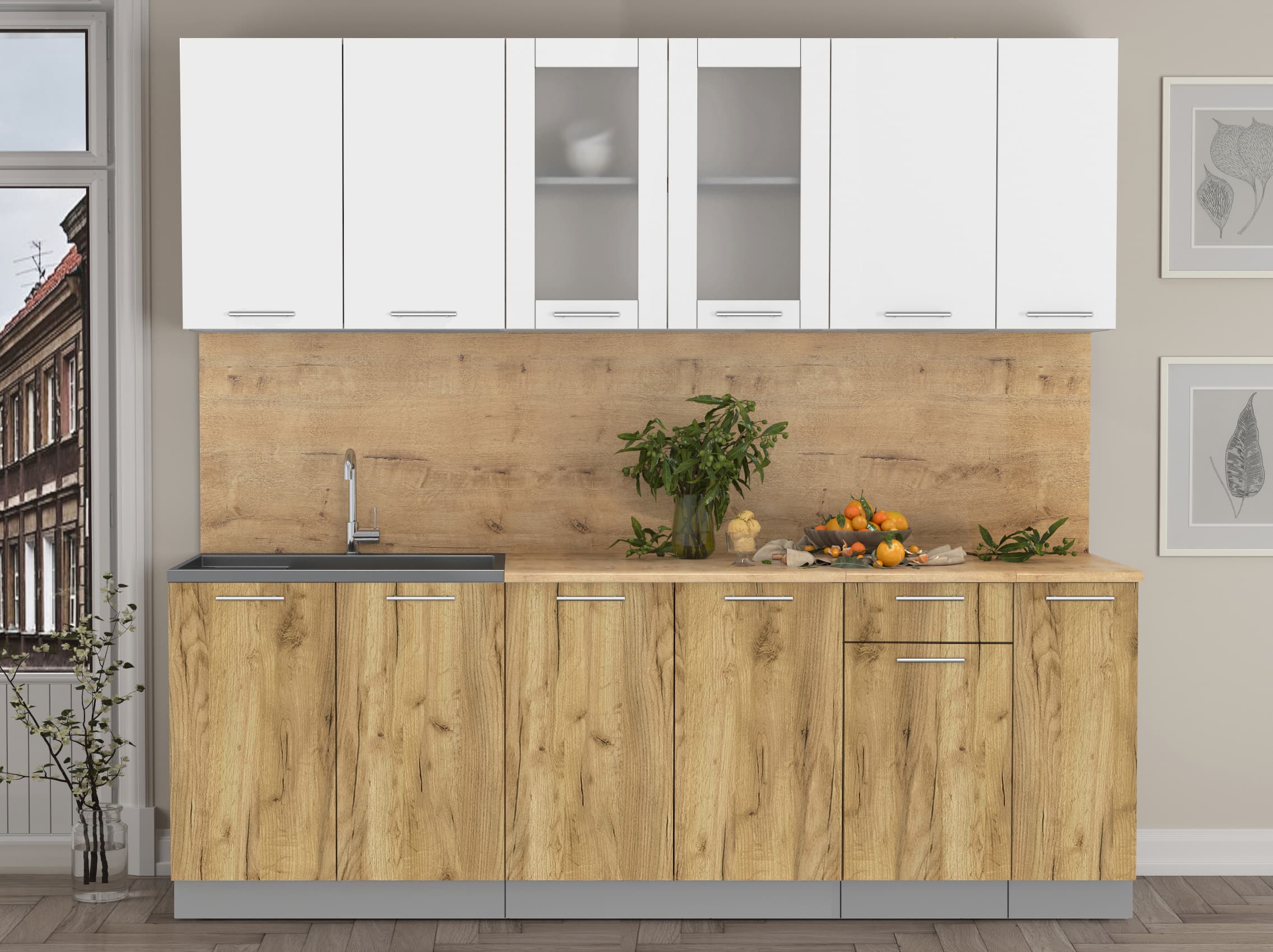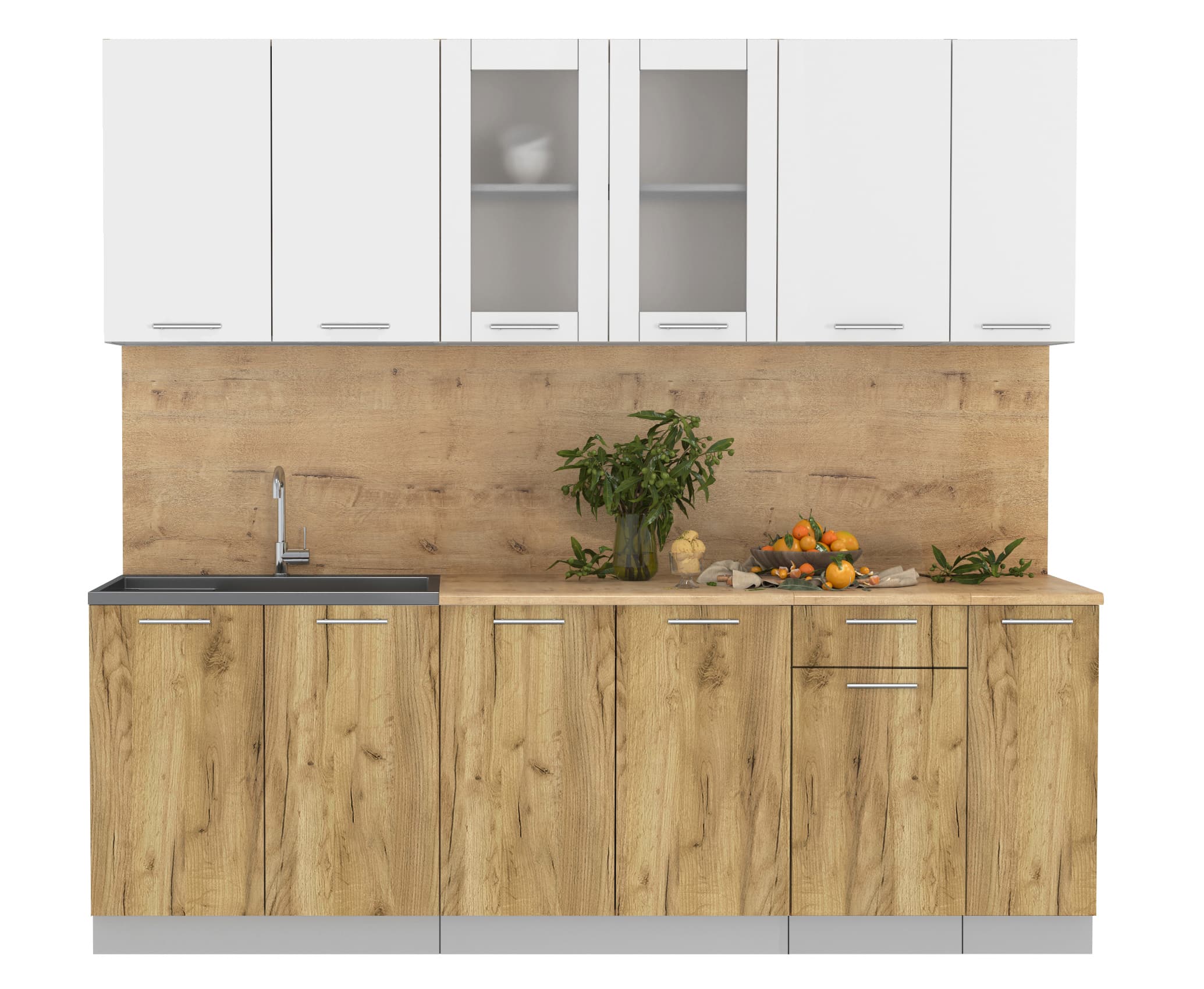 ГОТОВАЯ КУХНЯ МИЛА 2,3 (БЕЛЫЙ/ ДУБ ЗОЛОТОЙ) - Yuta.by