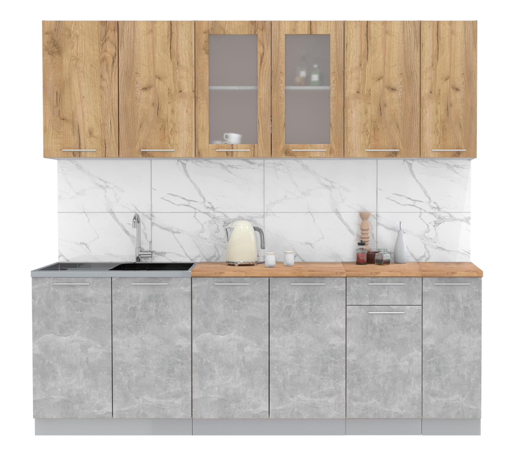 ГОТОВАЯ КУХНЯ МИЛА 2,3 (ДУБ ЗОЛОТОЙ/ БЕТОН) - Yuta.by
