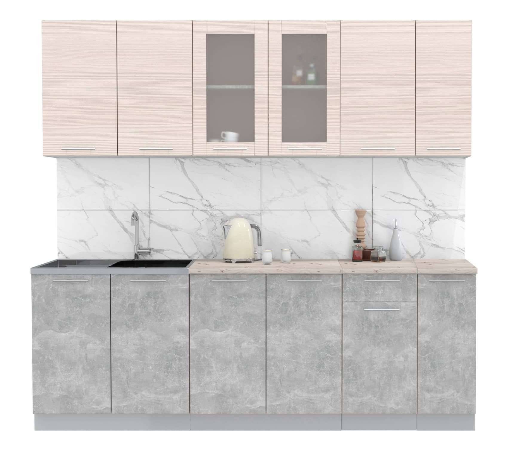 ГОТОВАЯ КУХНЯ МИЛА 2,3 (ВУДЛАЙН КРЕМОВЫЙ/ БЕТОН) - Yuta.by