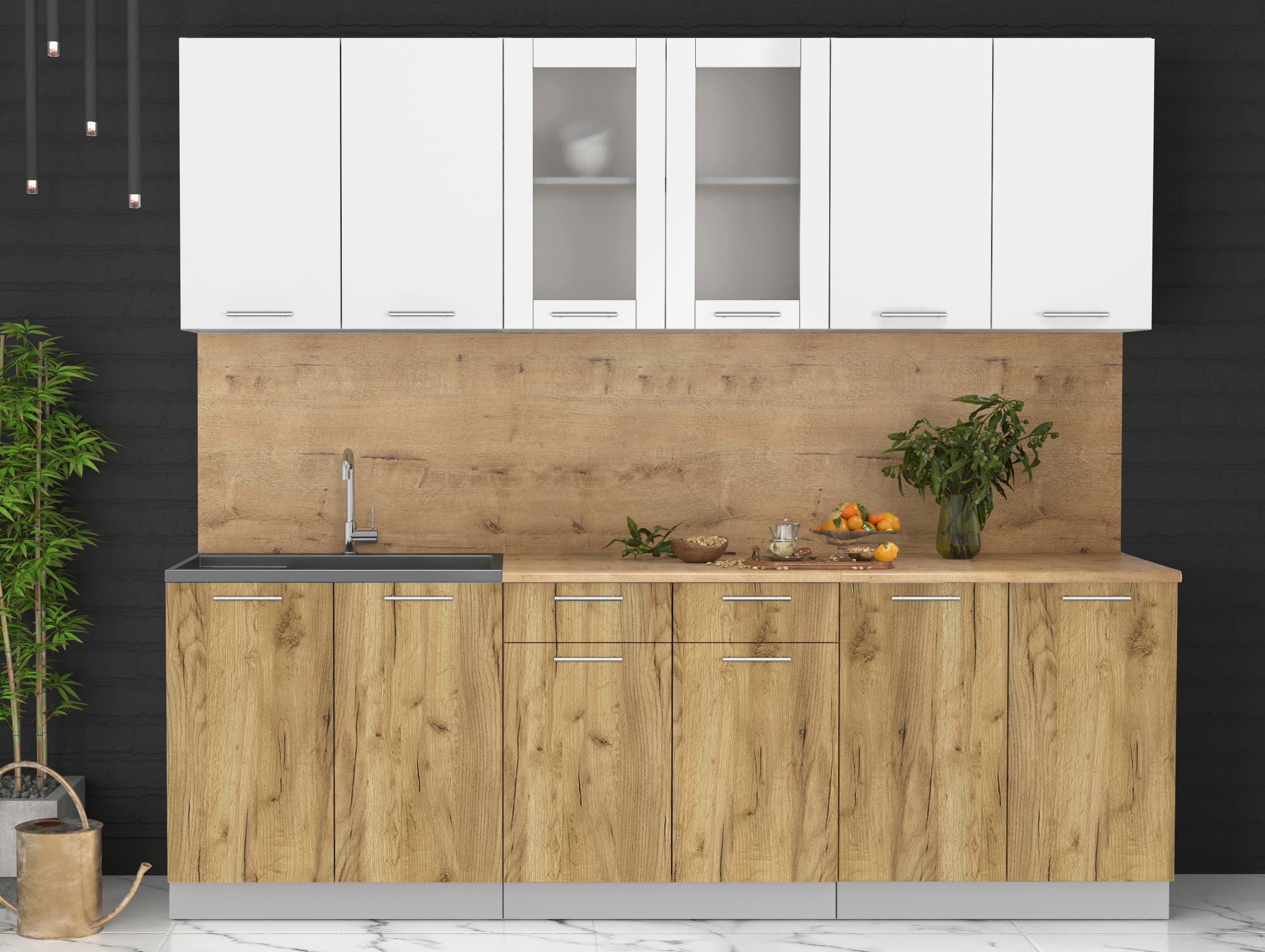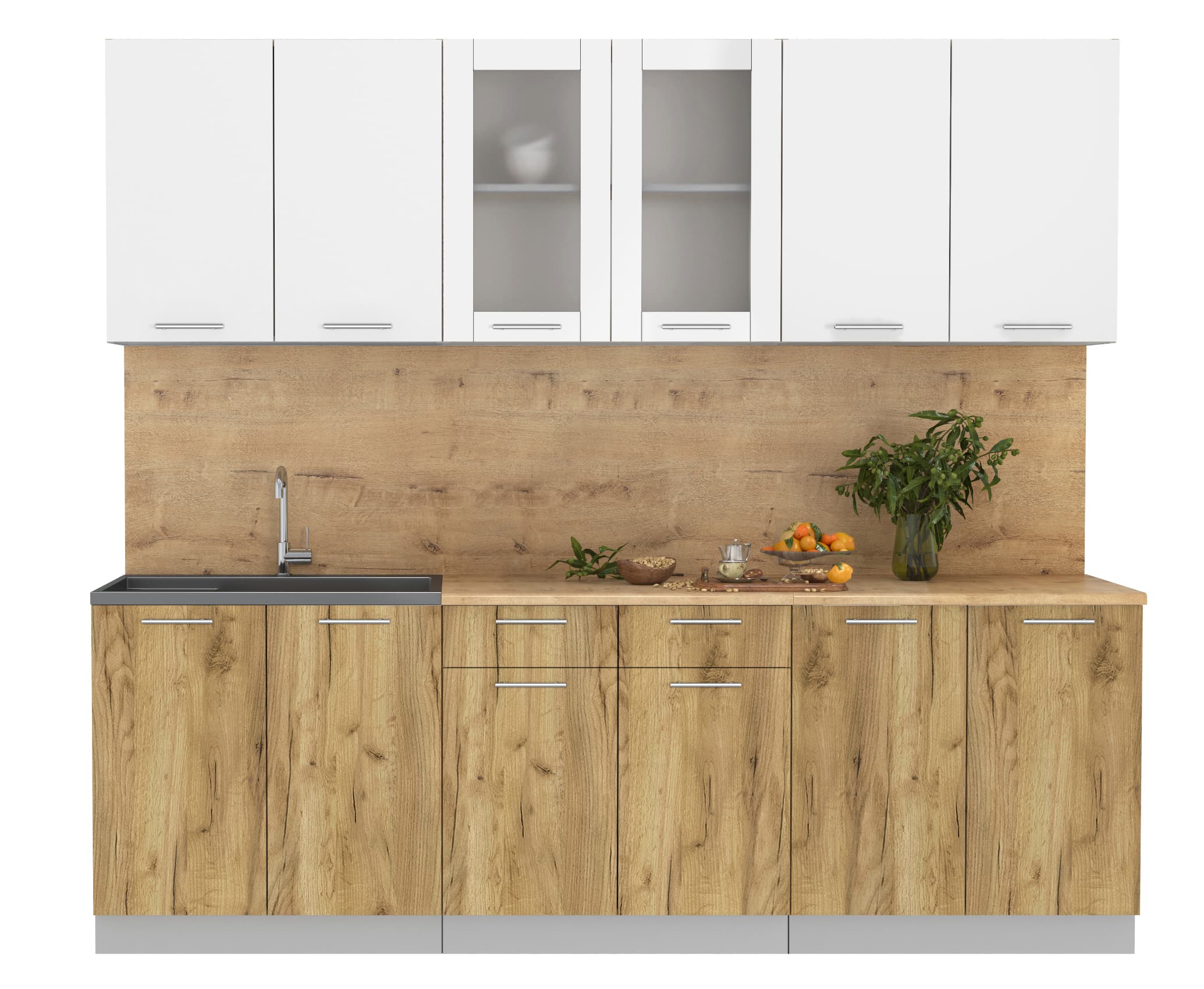 ГОТОВАЯ КУХНЯ МИЛА 2,4 (БЕЛЫЙ/ ДУБ ЗОЛОТОЙ)