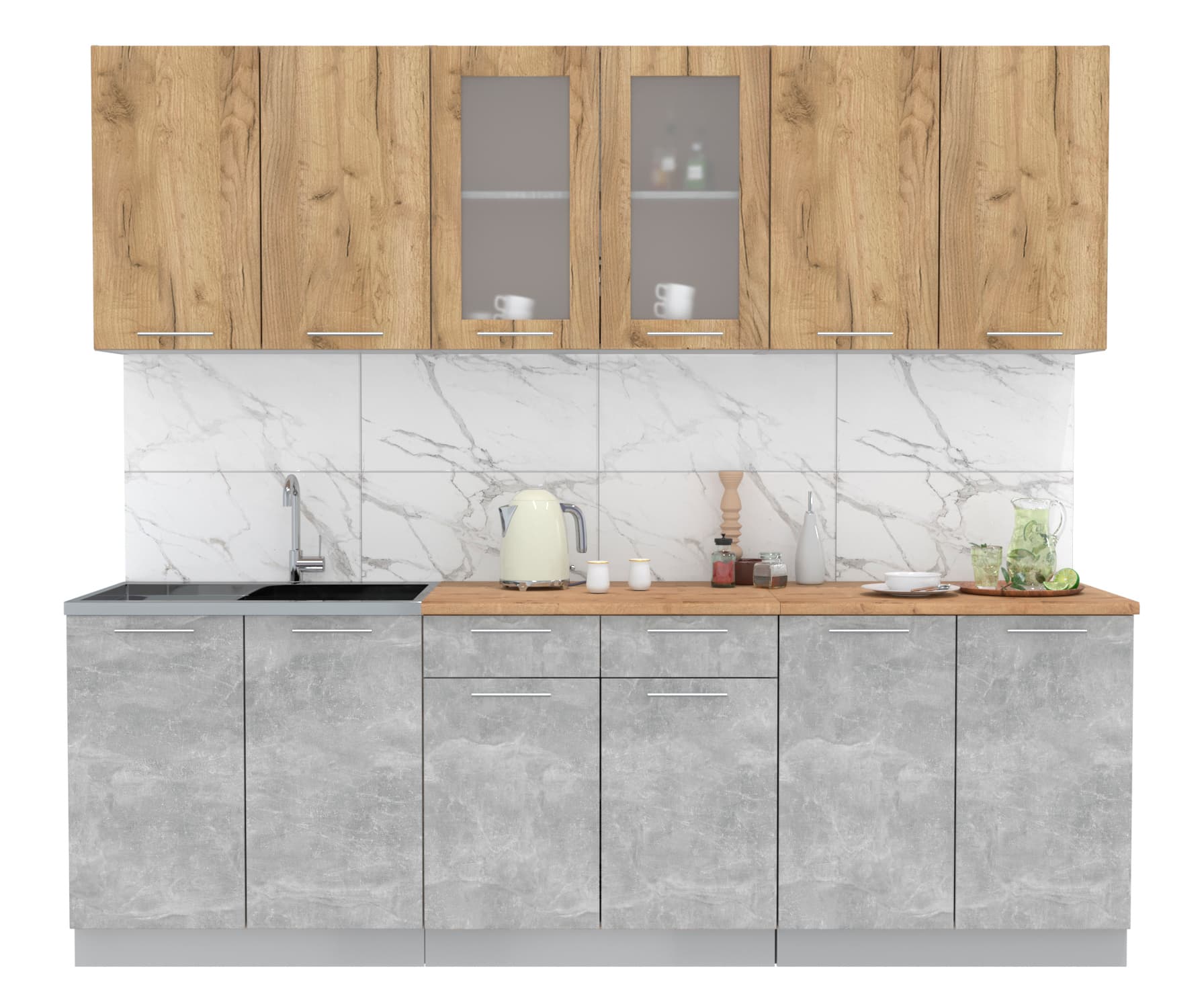 ГОТОВАЯ КУХНЯ МИЛА 2,4 (ДУБ ЗОЛОТОЙ/ БЕТОН) - Yuta.by