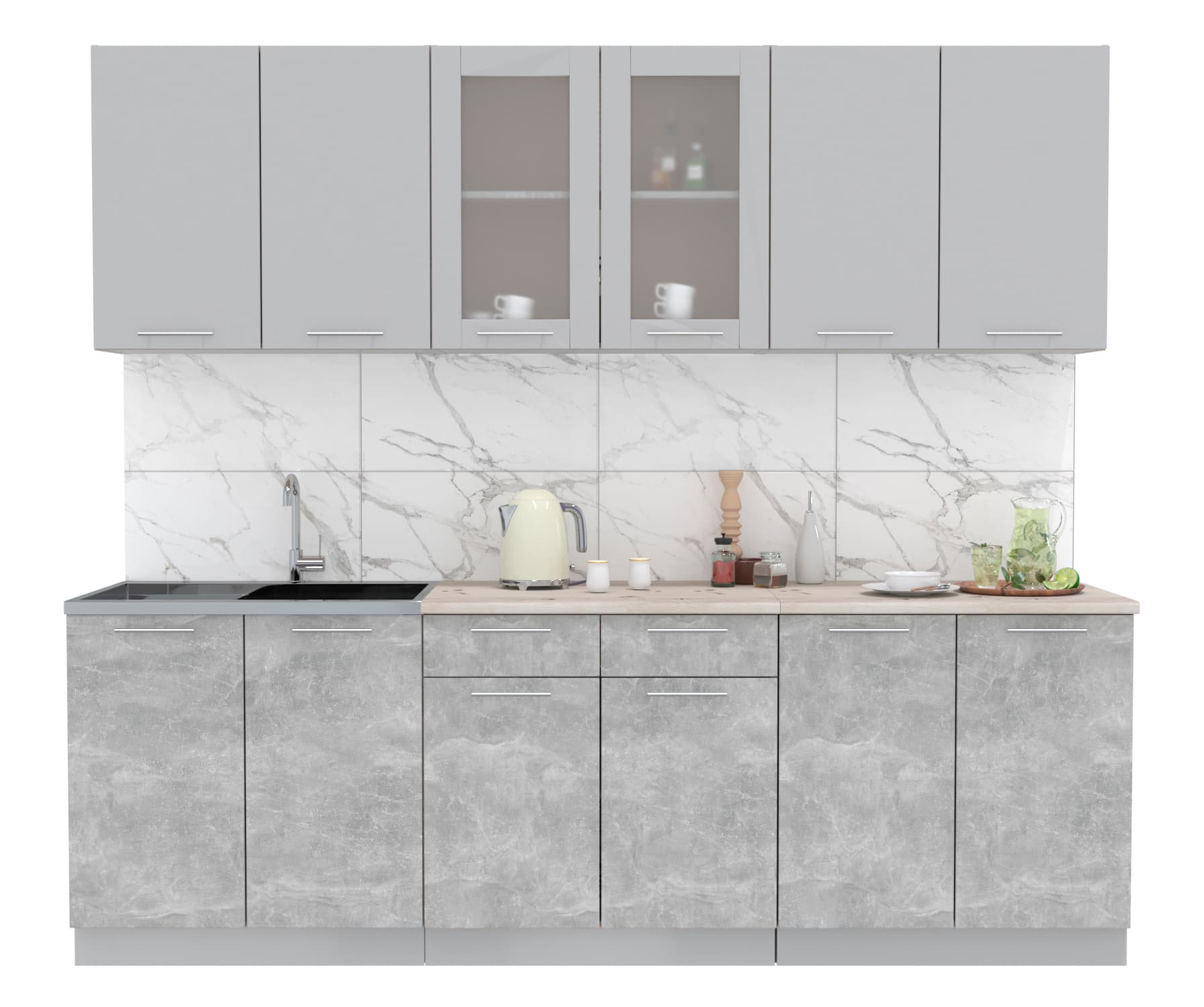 ГОТОВАЯ КУХНЯ МИЛА 2,4 (СЕРЕБРО/ БЕТОН) - Yuta.by