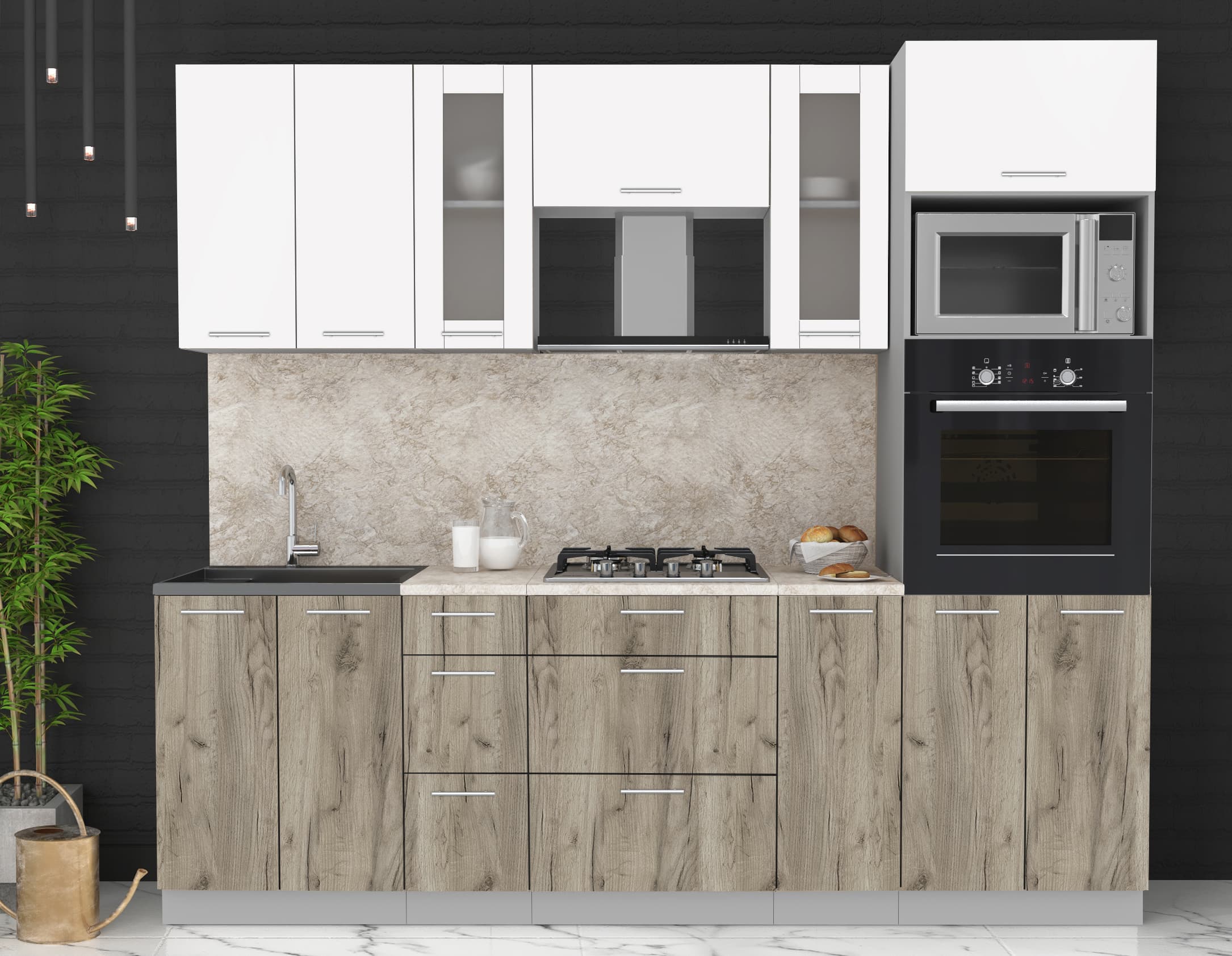 ГОТОВАЯ КУХНЯ МИЛА 2,4 ВТ (БЕЛЫЙ/ ДУБ СЕРЫЙ) - Yuta.by