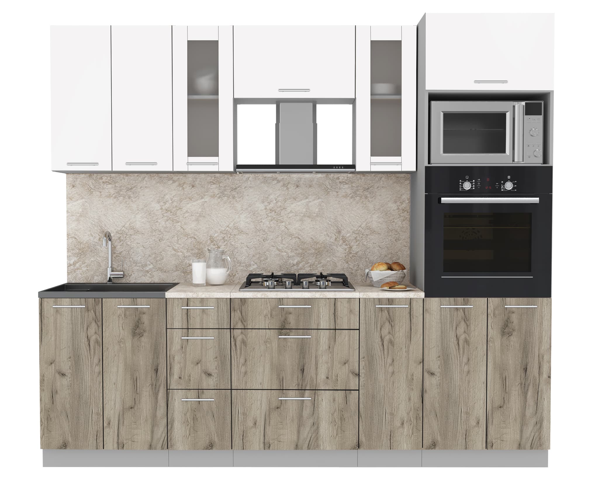 ГОТОВАЯ КУХНЯ МИЛА 2,4 ВТ (БЕЛЫЙ/ ДУБ СЕРЫЙ)