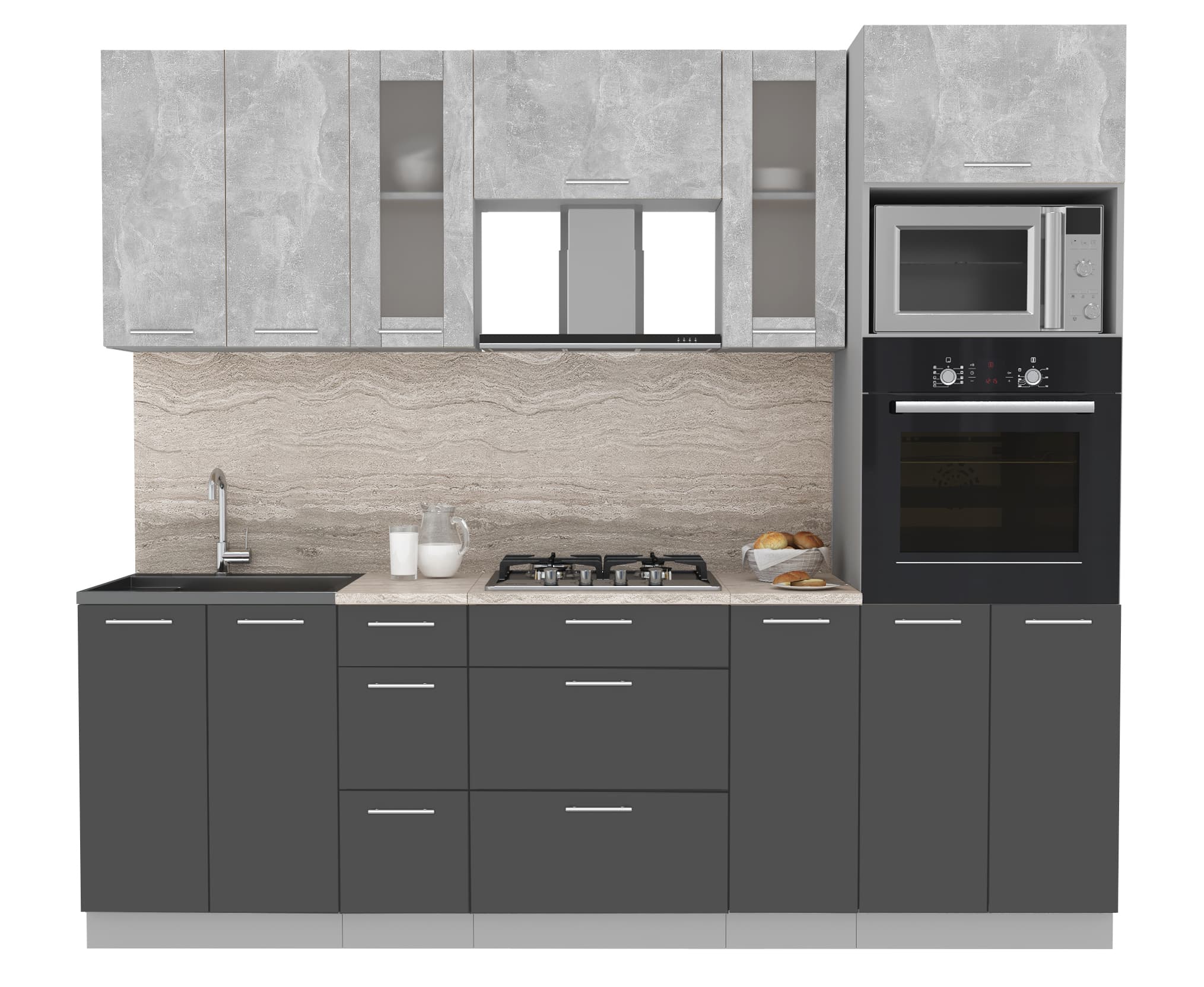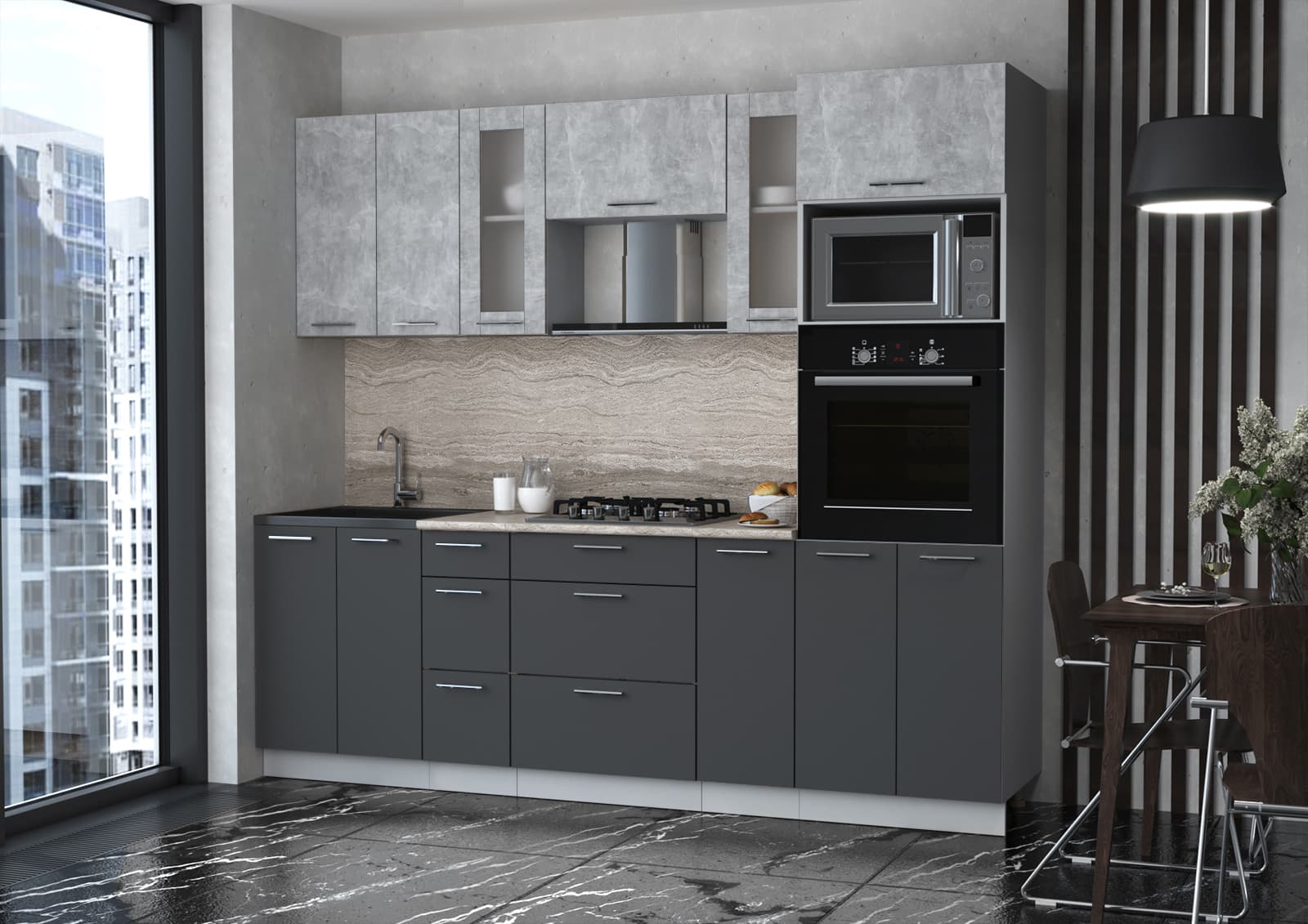 ГОТОВАЯ КУХНЯ МИЛА 2,4 ВТ (БЕТОН/ АНТРАЦИТ)