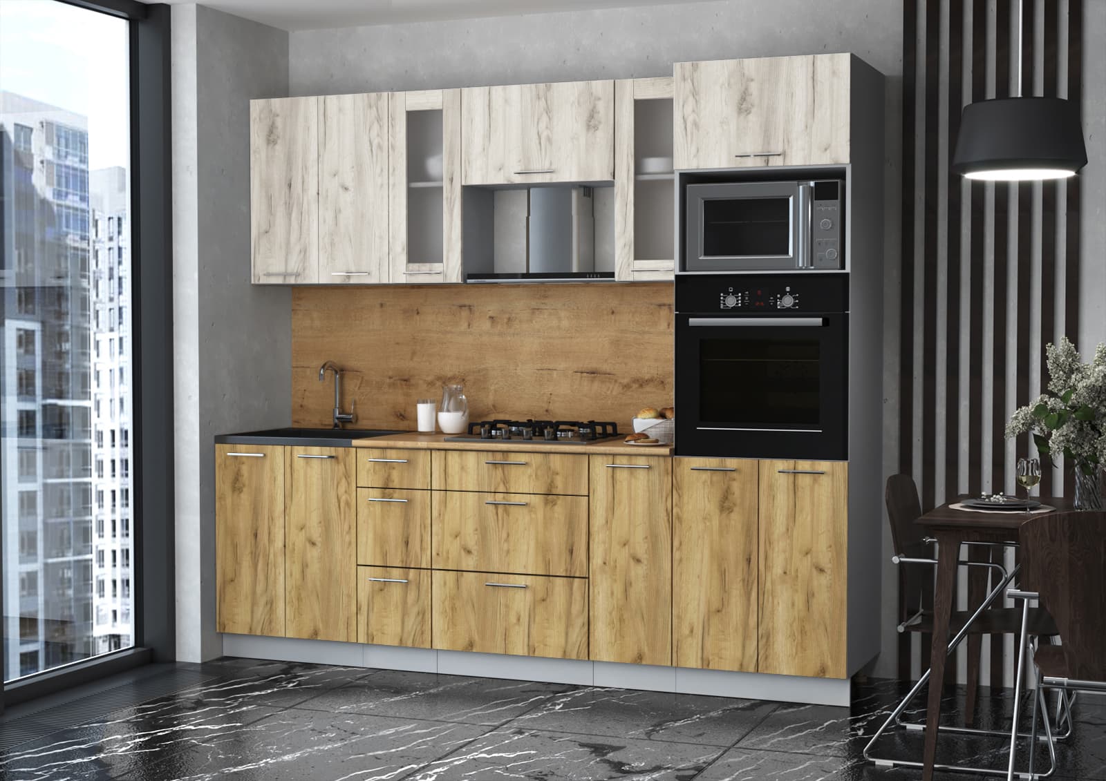 ГОТОВАЯ КУХНЯ МИЛА 2,4 ВТ (ДУБ БЕЛЫЙ/ ДУБ ЗОЛОТОЙ)