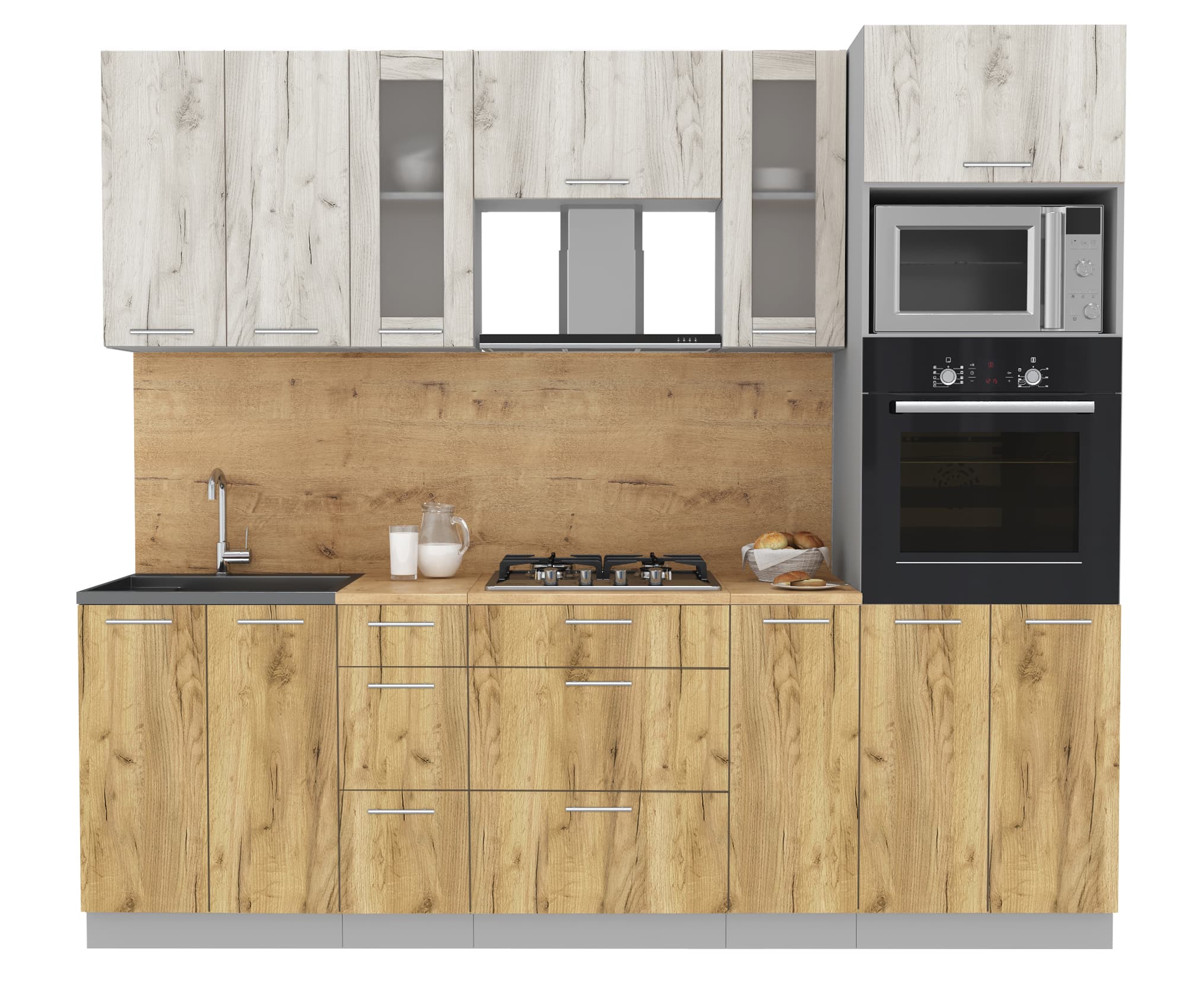 ГОТОВАЯ КУХНЯ МИЛА 2,4 ВТ (ДУБ БЕЛЫЙ/ ДУБ ЗОЛОТОЙ) - Yuta.by