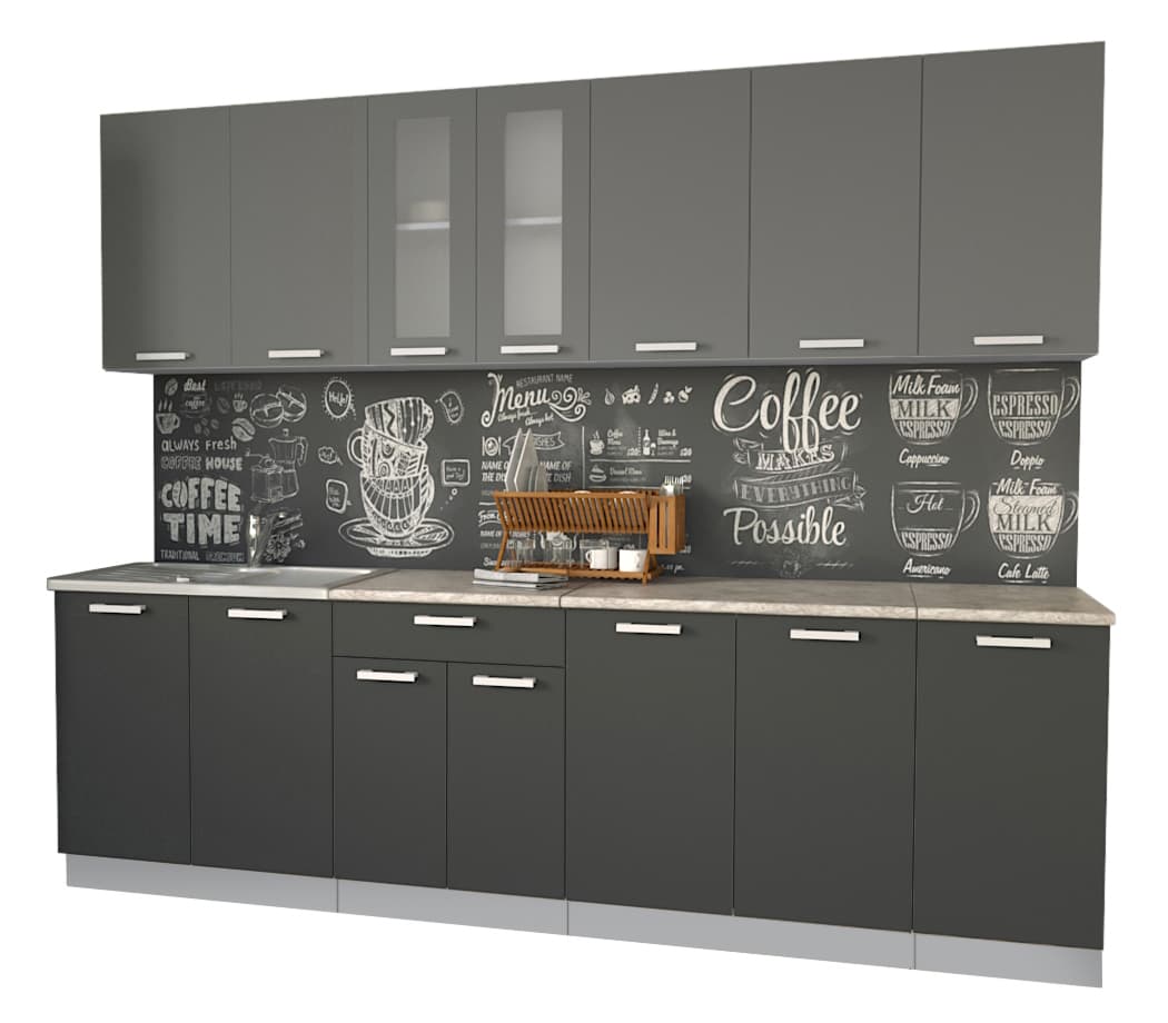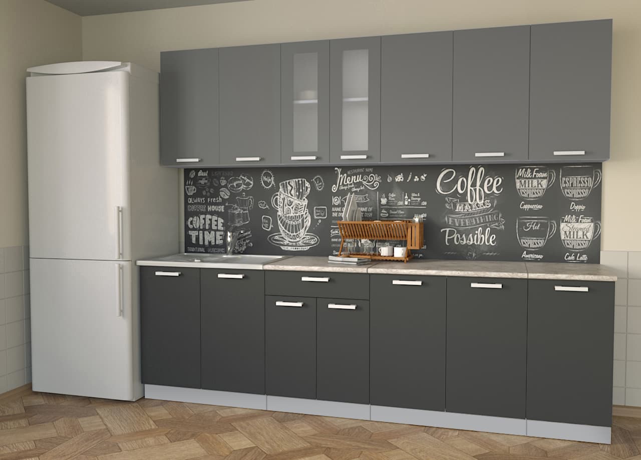 ГОТОВАЯ КУХНЯ МИЛА 2,6 (СЕРЕБРО/ АНТРАЦИТ)
