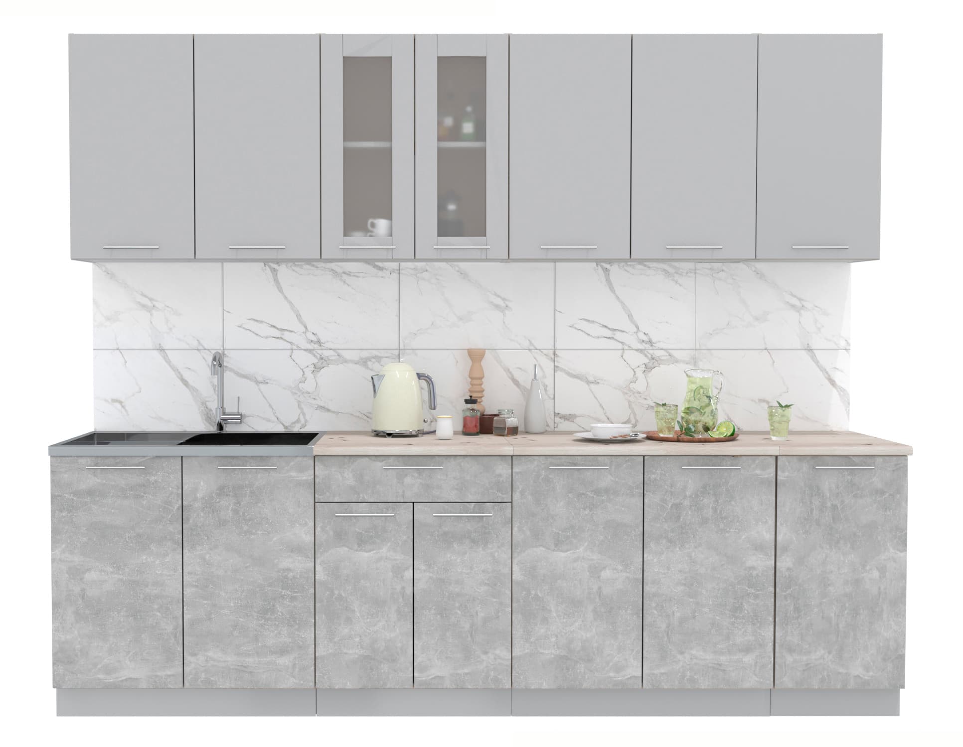 ГОТОВАЯ КУХНЯ МИЛА 2,6 (СЕРЕБРО/ БЕТОН) - Yuta.by