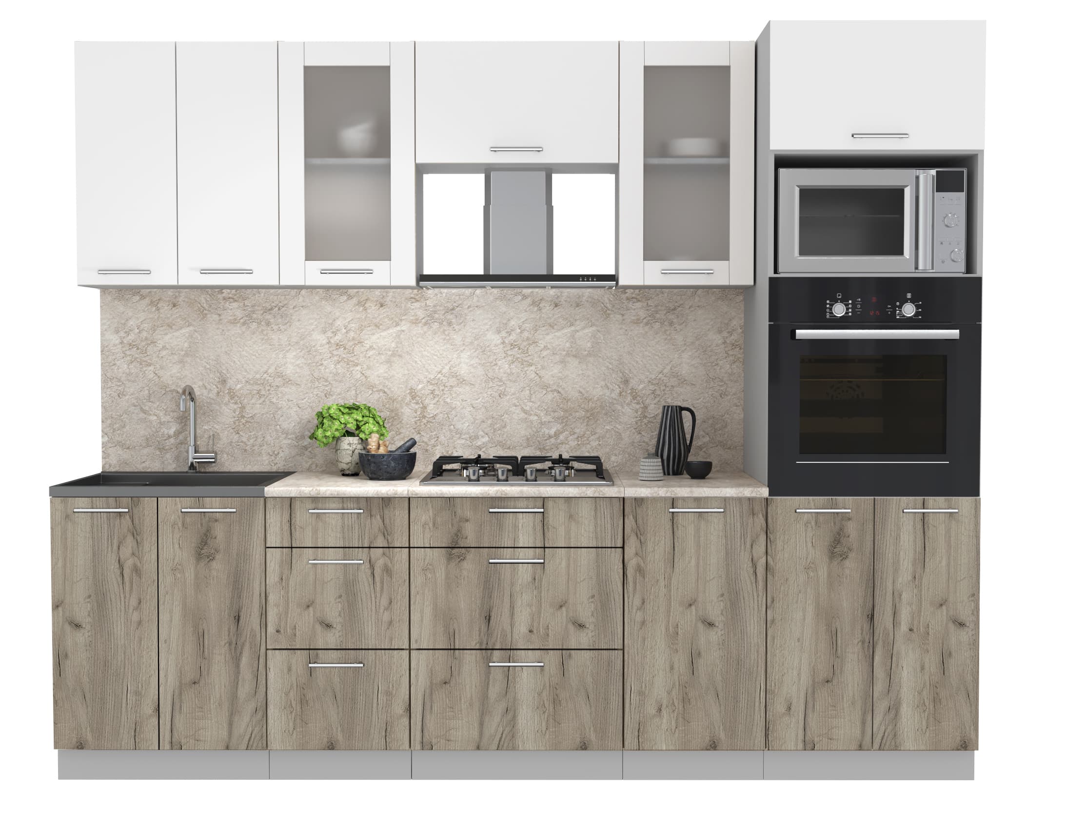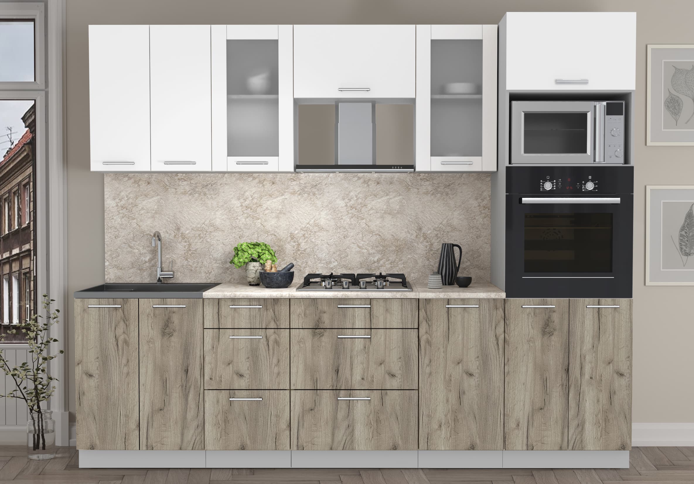 ГОТОВАЯ КУХНЯ МИЛА 2,6 ВТ (БЕЛЫЙ/ ДУБ СЕРЫЙ) - Yuta.by