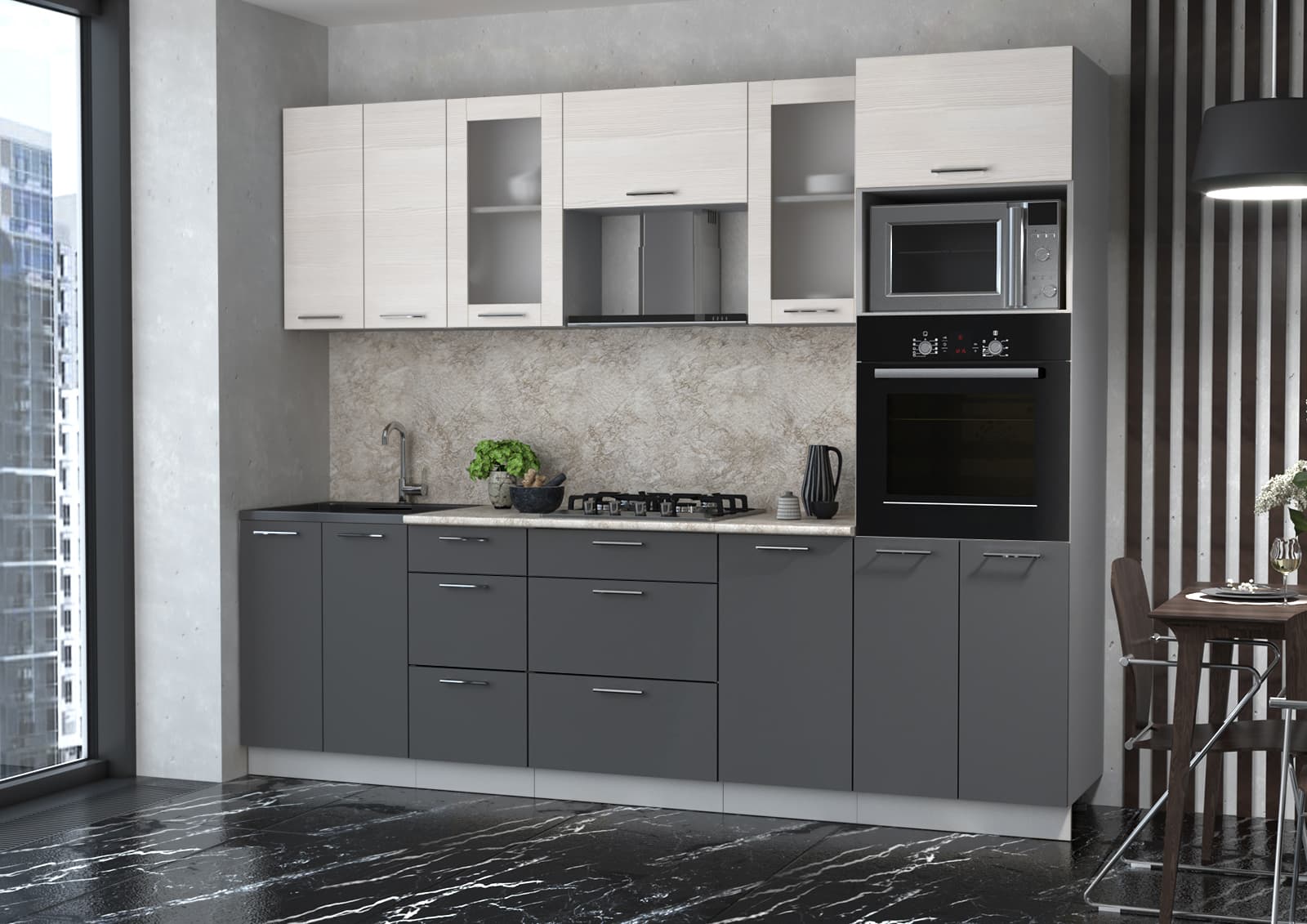 ГОТОВАЯ КУХНЯ МИЛА 2,6 ВТ (ВУДЛАЙН КРЕМОВЫЙ/ АНТРАЦИТ) - Yuta.by