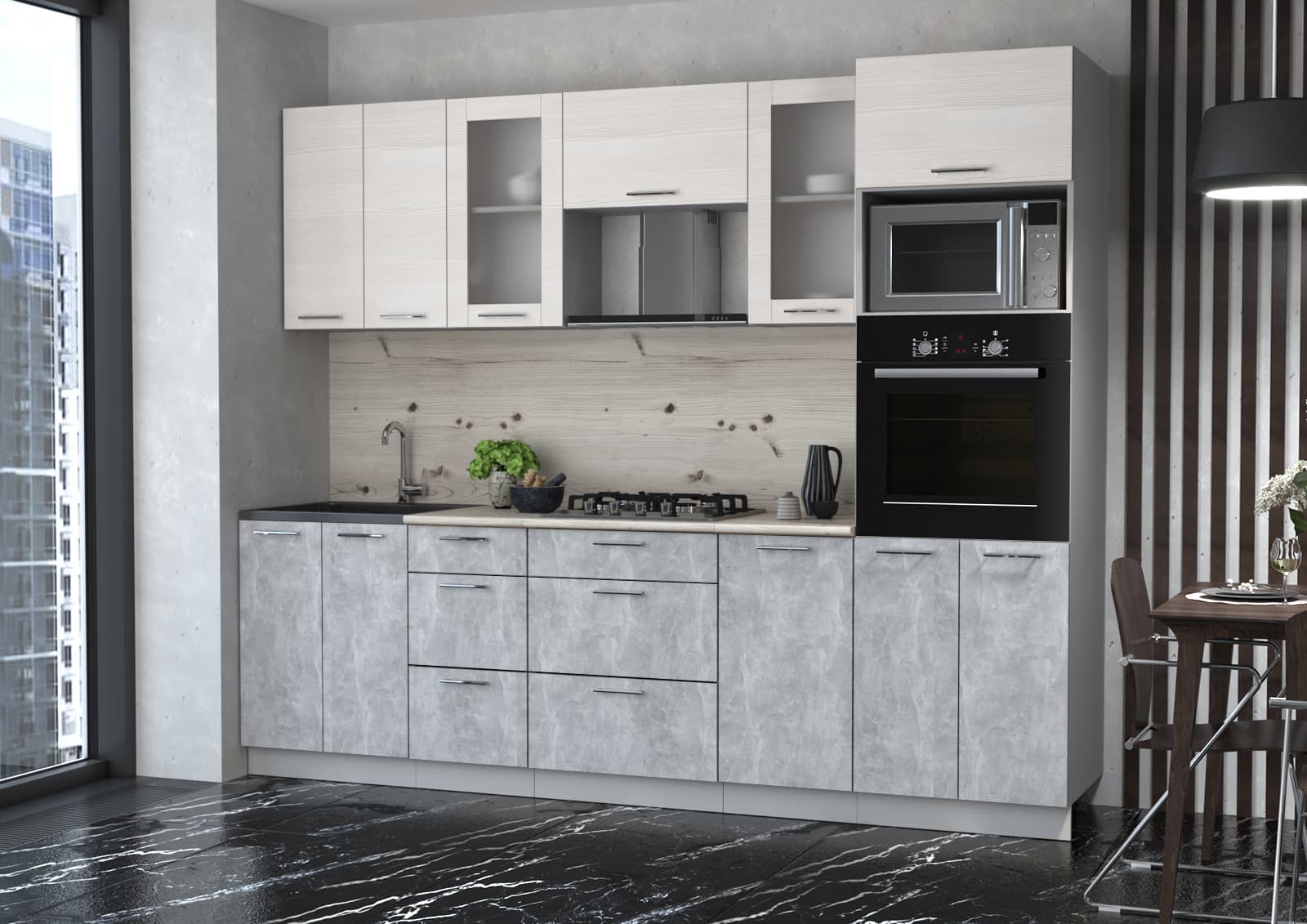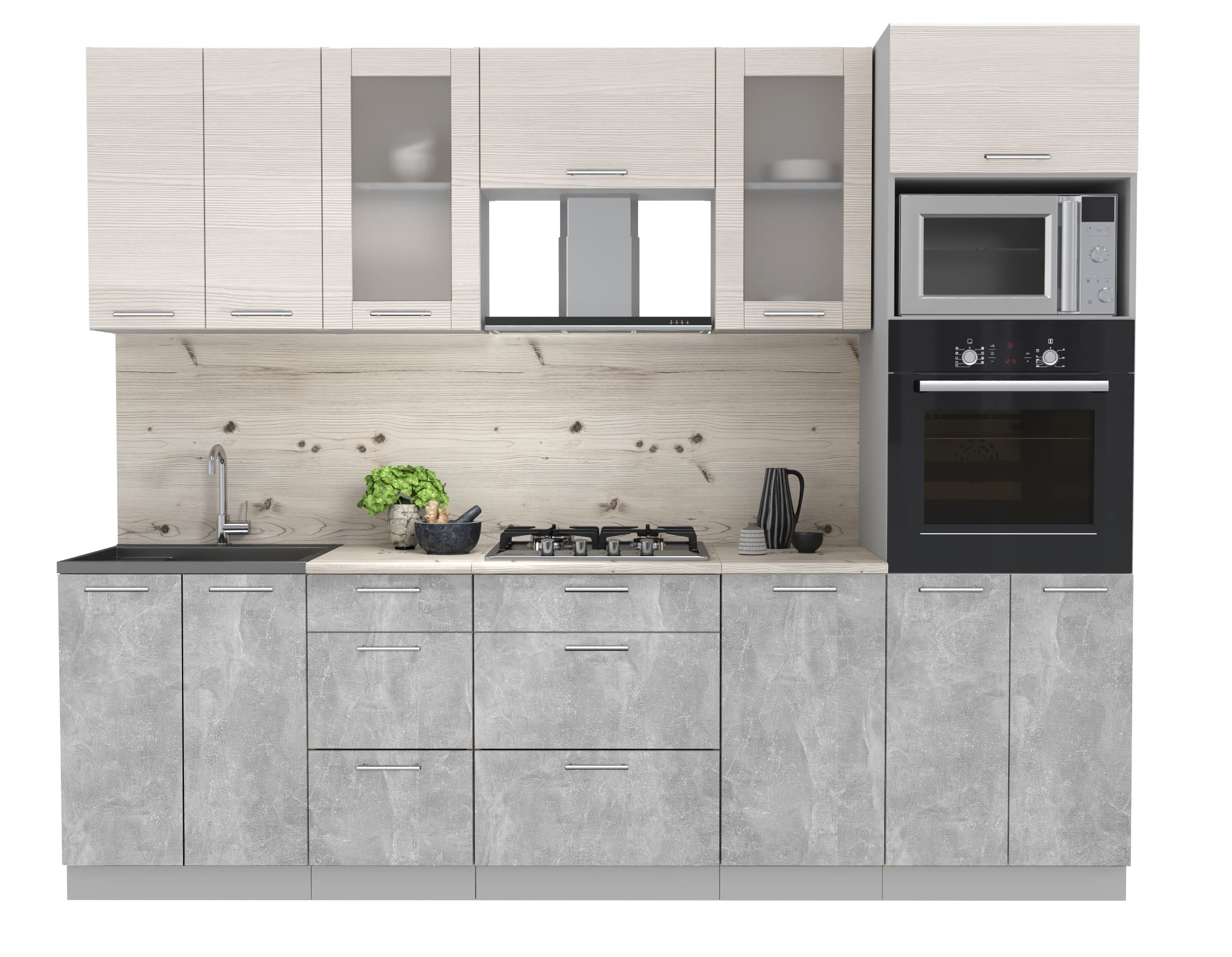 ГОТОВАЯ КУХНЯ МИЛА 2,6 ВТ (ВУДЛАЙН КРЕМОВЫЙ/ БЕТОН) - Yuta.by