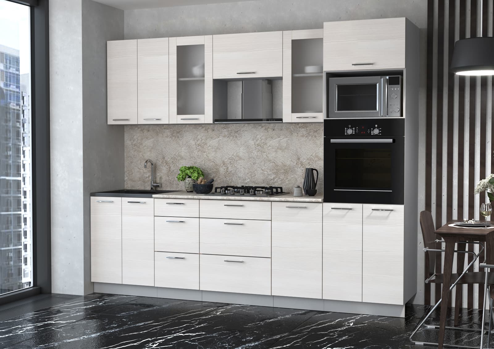 ГОТОВАЯ КУХНЯ МИЛА 2,6 ВТ (ВУДЛАЙН КРЕМОВЫЙ/ ВУДЛАЙН КРЕМОВЫЙ) - Yuta.by