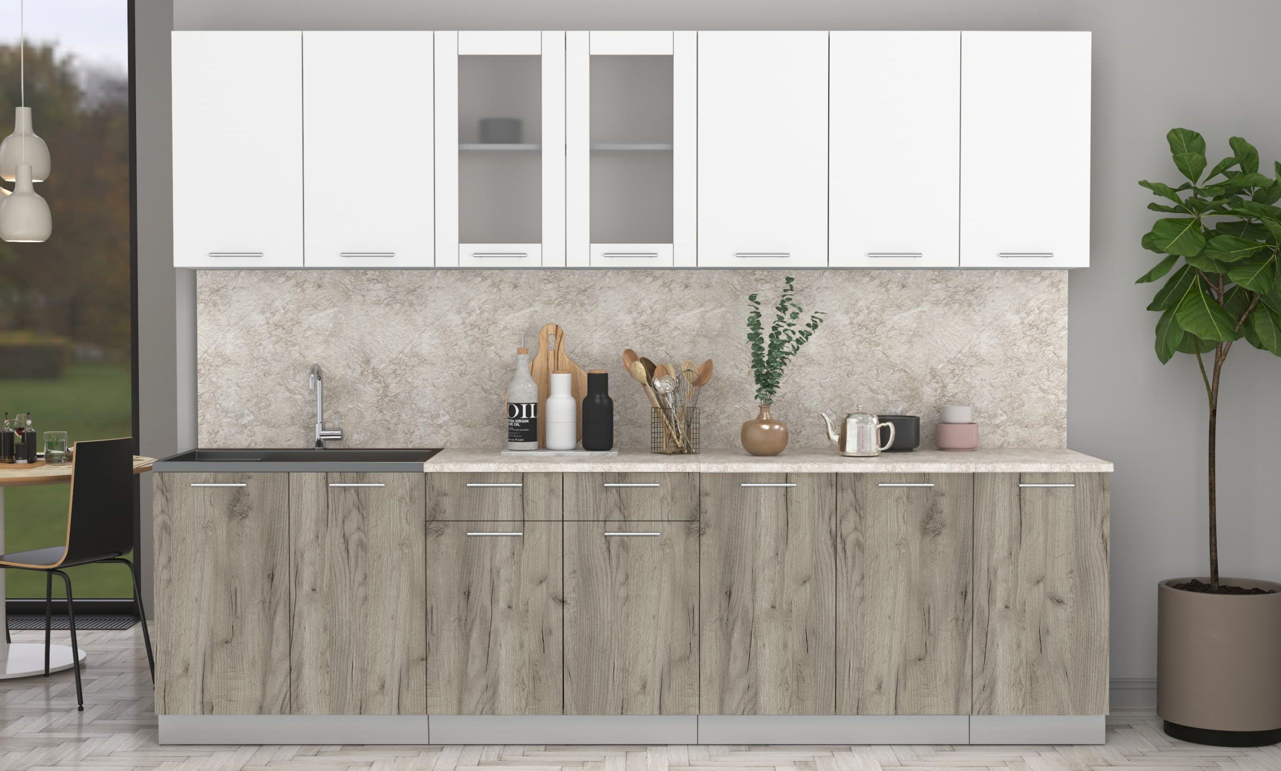 ГОТОВАЯ КУХНЯ МИЛА 2,8 (БЕЛЫЙ/ ДУБ СЕРЫЙ) - Yuta.by