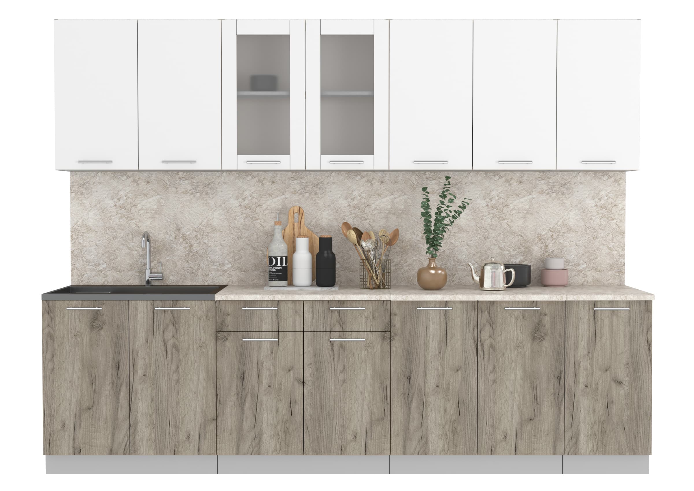 ГОТОВАЯ КУХНЯ МИЛА 2,8 (БЕЛЫЙ/ ДУБ СЕРЫЙ)