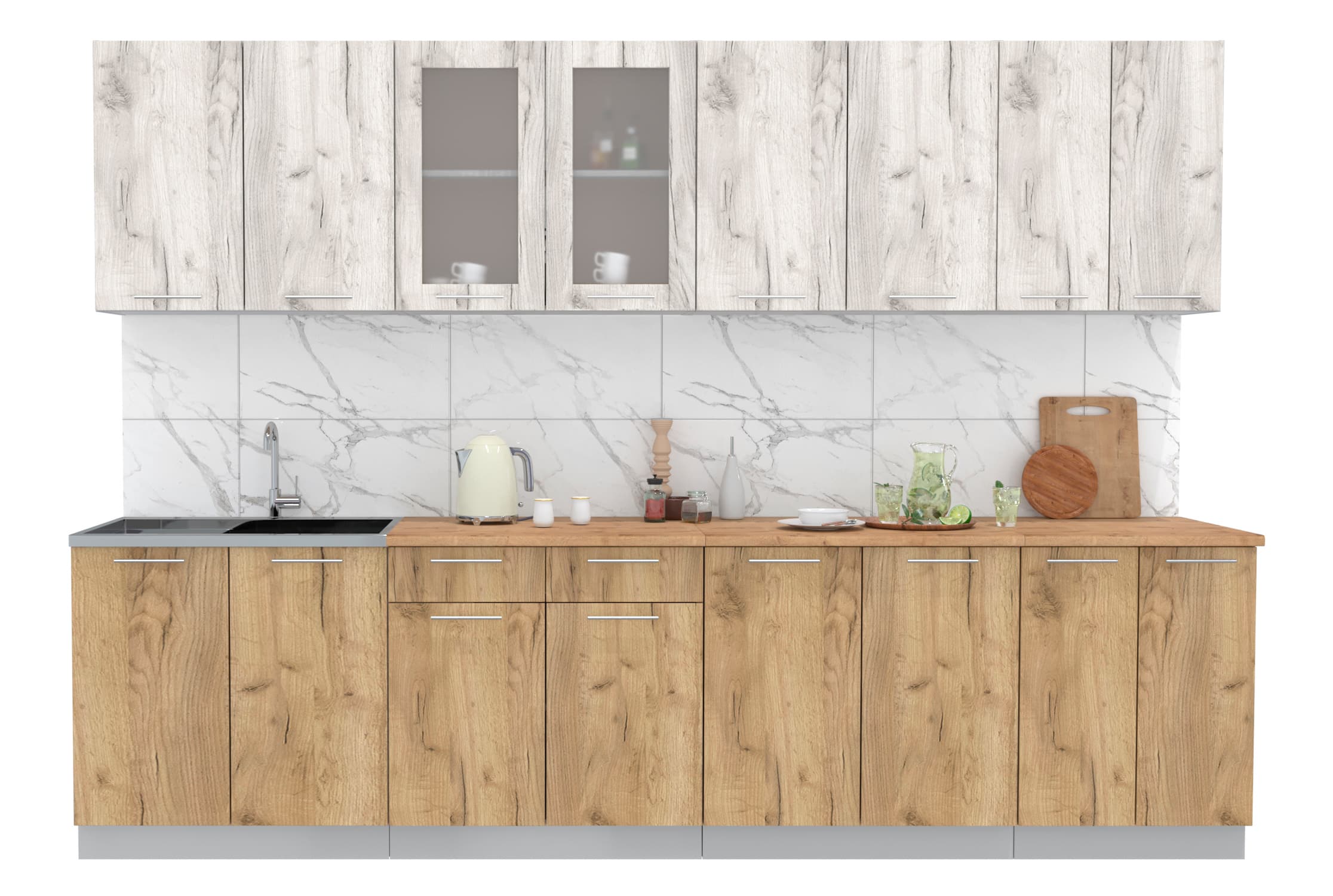 ГОТОВАЯ КУХНЯ МИЛА 3,0 (ДУБ БЕЛЫЙ/ ДУБ ЗОЛОТОЙ) - Yuta.by