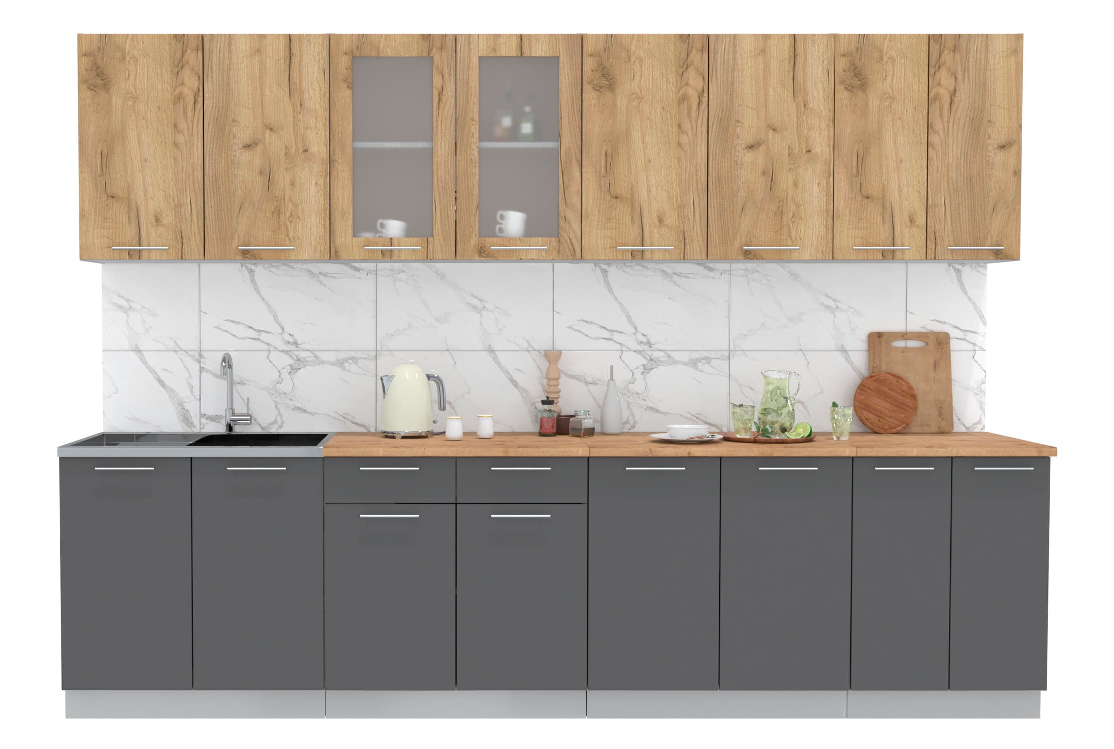 ГОТОВАЯ КУХНЯ МИЛА 3,0 (ДУБ ЗОЛОТОЙ/ АНТРАЦИТ)