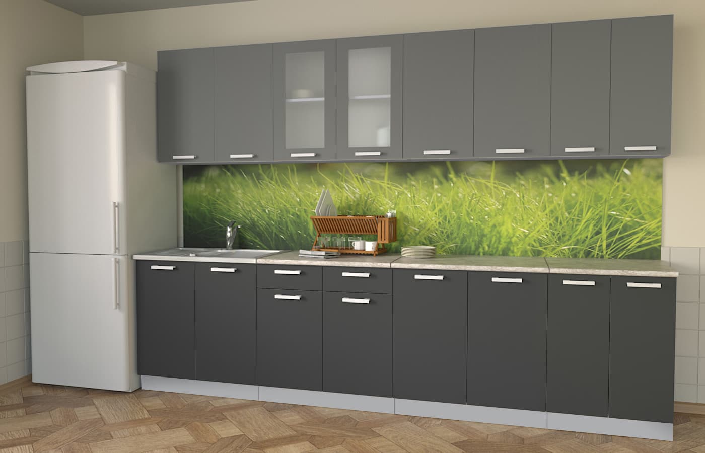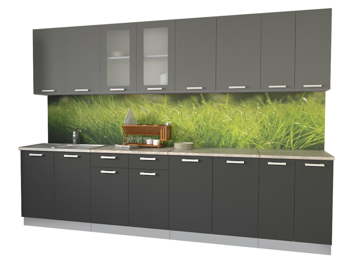 ГОТОВАЯ КУХНЯ МИЛА 3,0 (СЕРЕБРО/ АНТРАЦИТ)