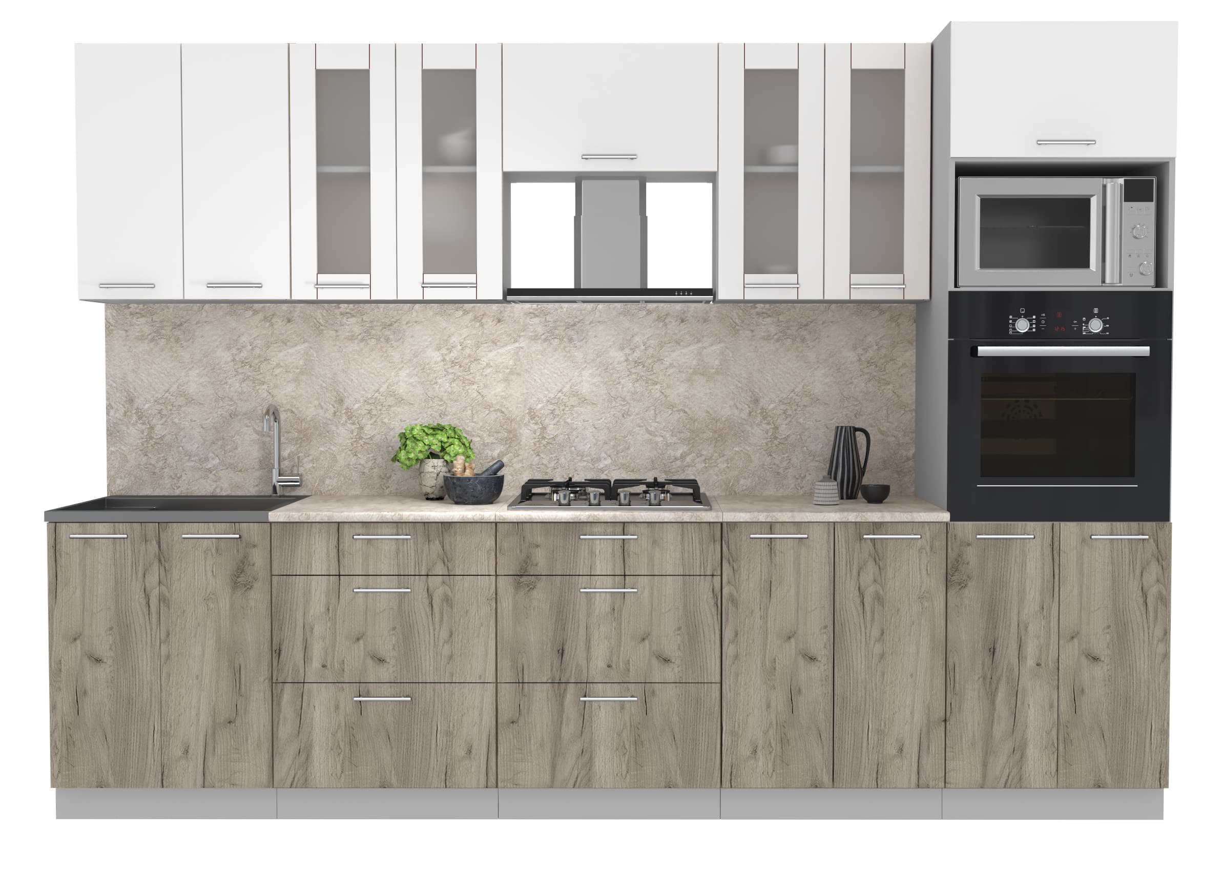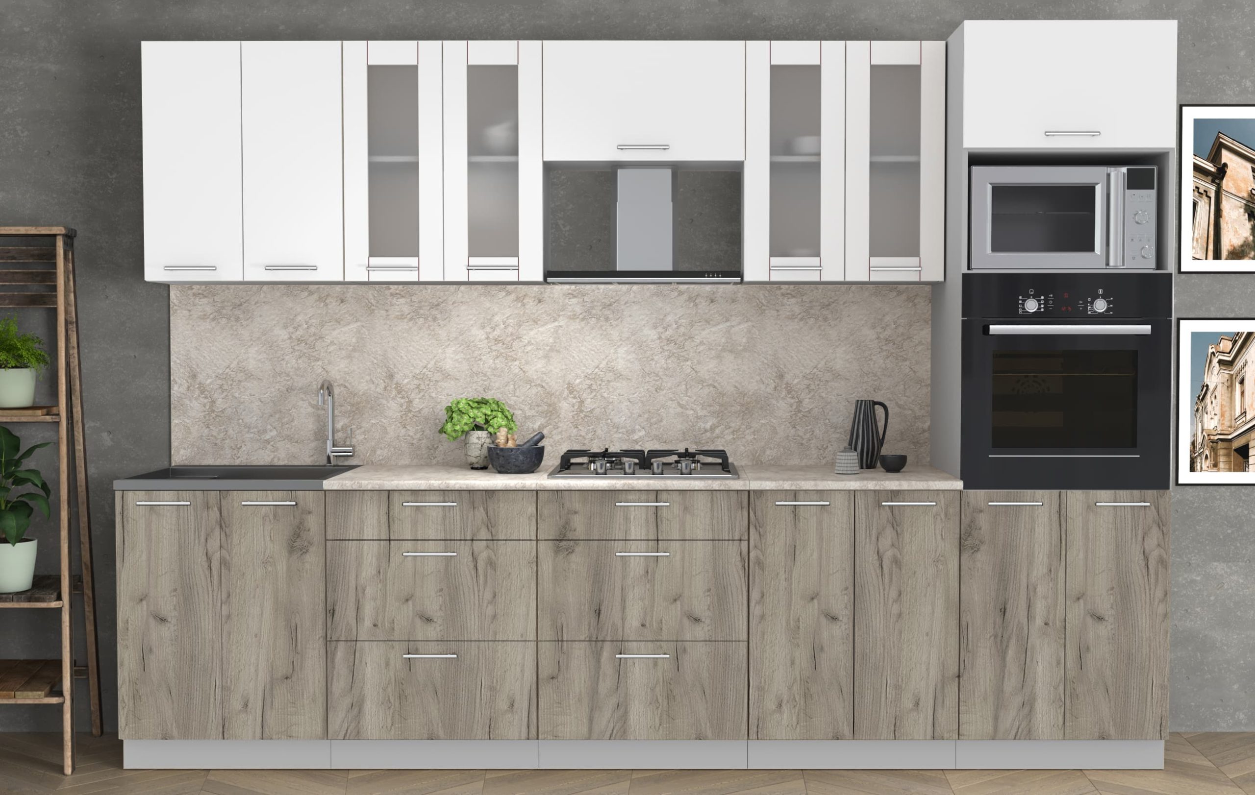 ГОТОВАЯ КУХНЯ МИЛА 3,0 ВТ (БЕЛЫЙ/ ДУБ СЕРЫЙ) - Yuta.by