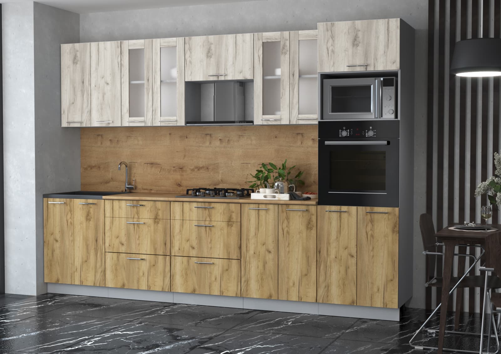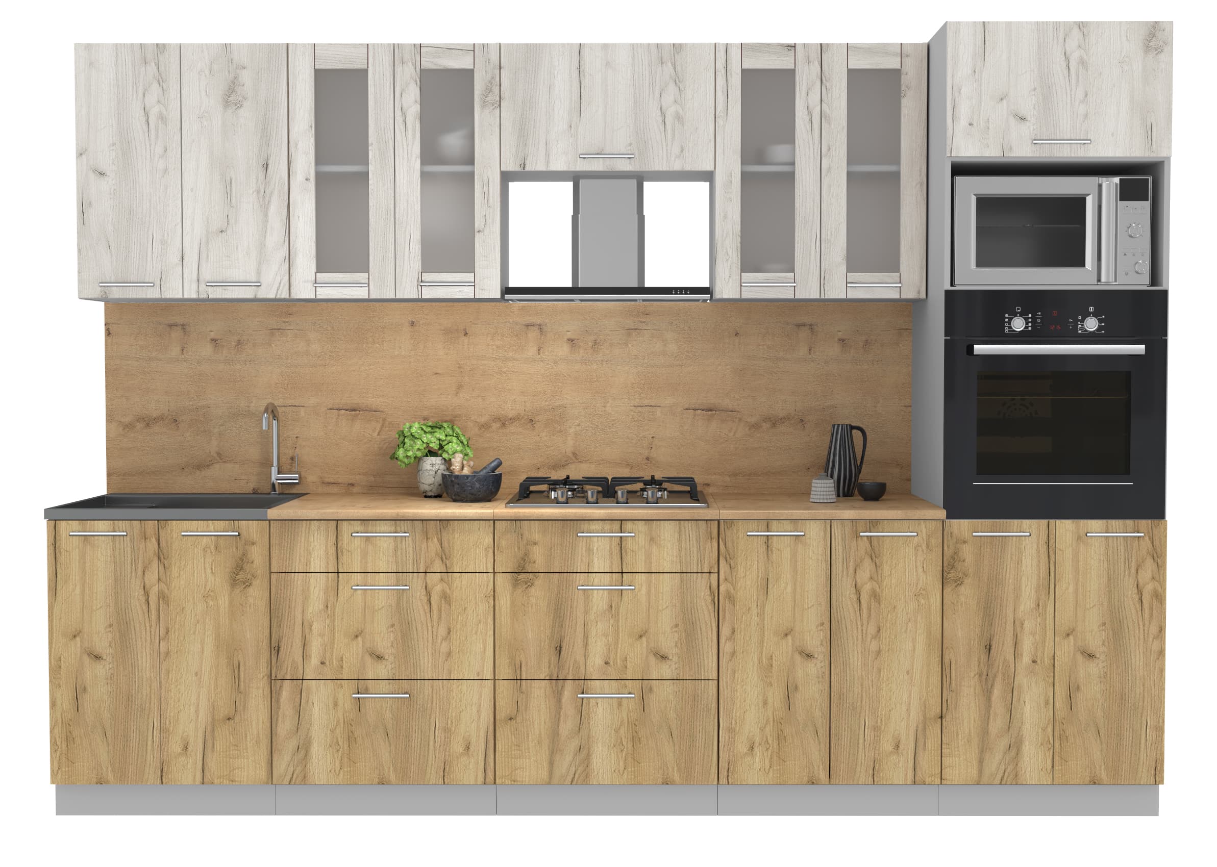ГОТОВАЯ КУХНЯ МИЛА 3,0 ВТ (ДУБ БЕЛЫЙ/ ДУБ ЗОЛОТОЙ) - Yuta.by