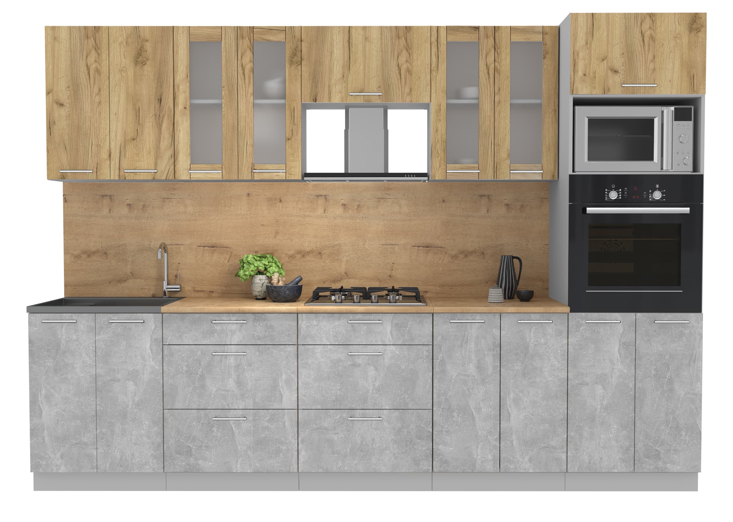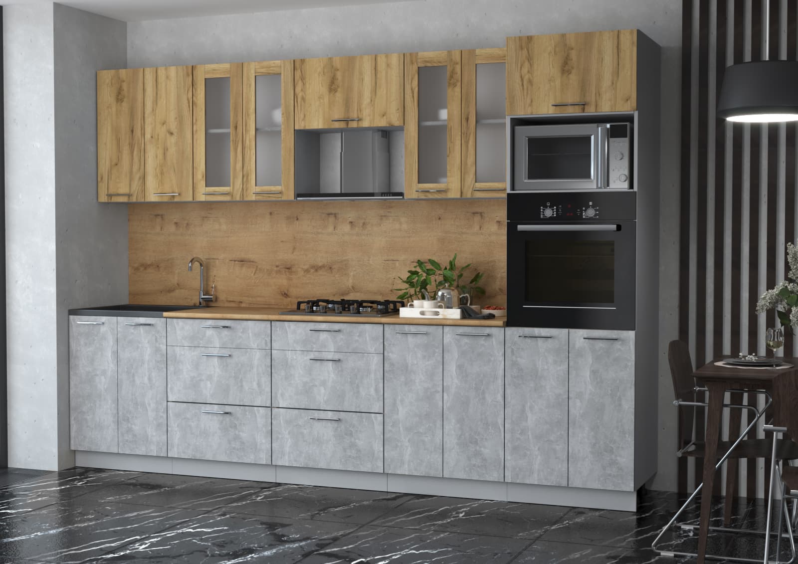 ГОТОВАЯ КУХНЯ МИЛА 3,0 ВТ (ДУБ ЗОЛОТОЙ/ БЕТОН) - Yuta.by