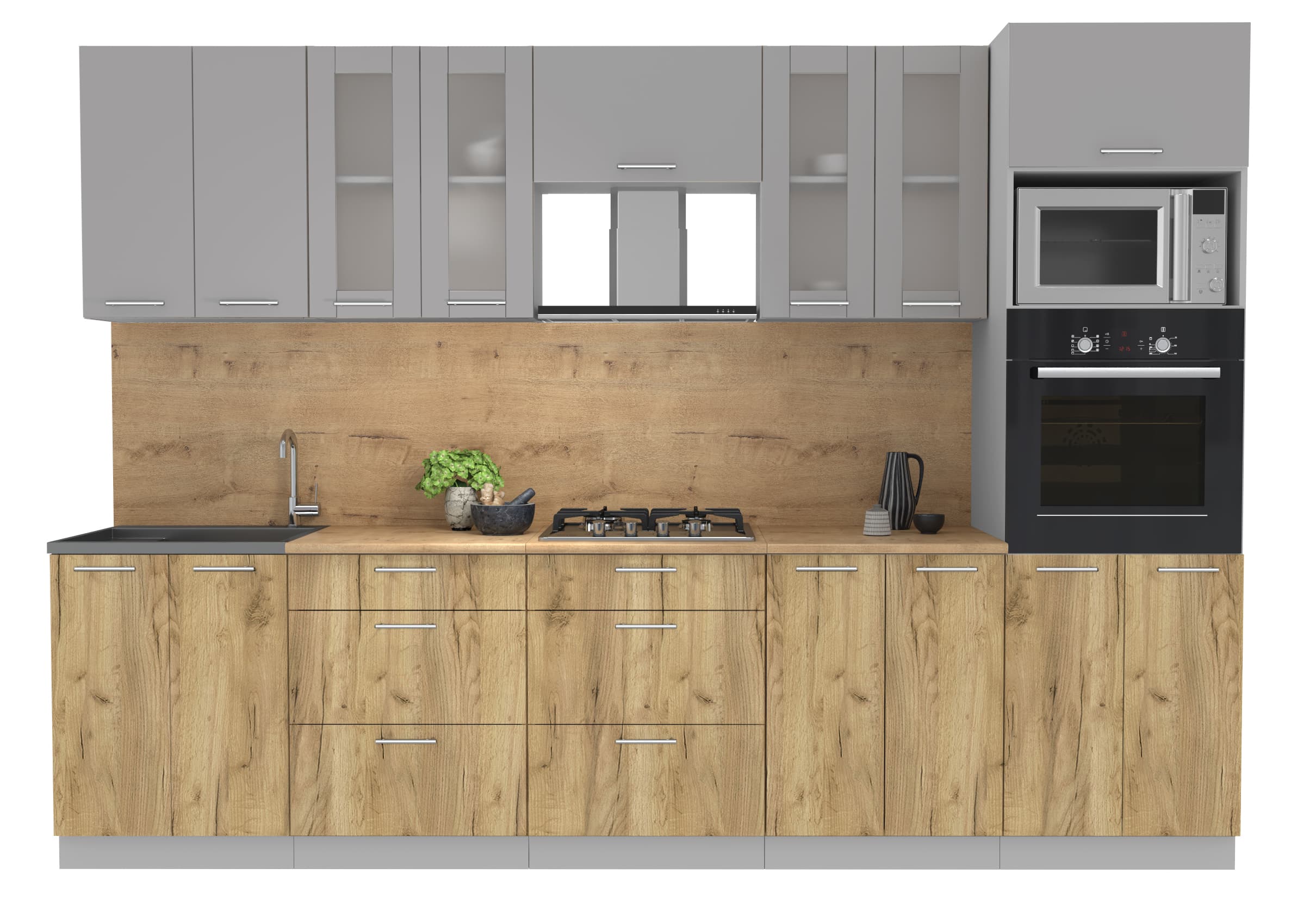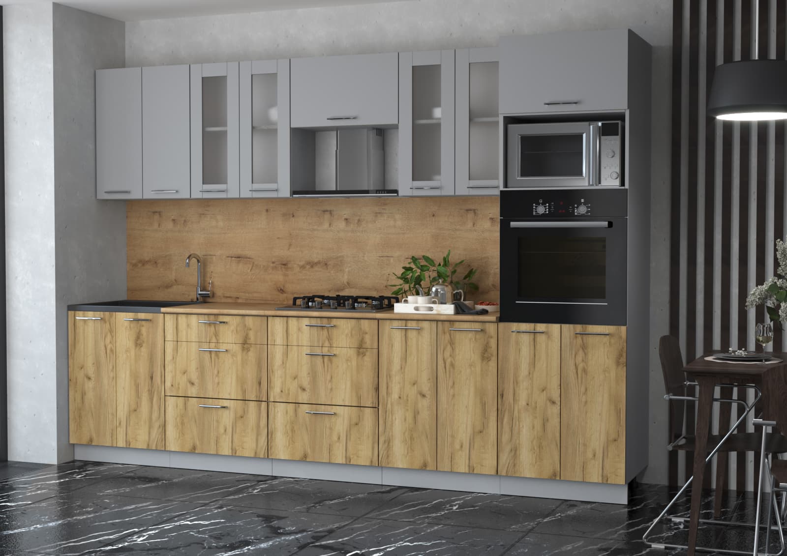 ГОТОВАЯ КУХНЯ МИЛА 3,0 ВТ (СЕРЕБРО/ ДУБ ЗОЛОТОЙ) - Yuta.by