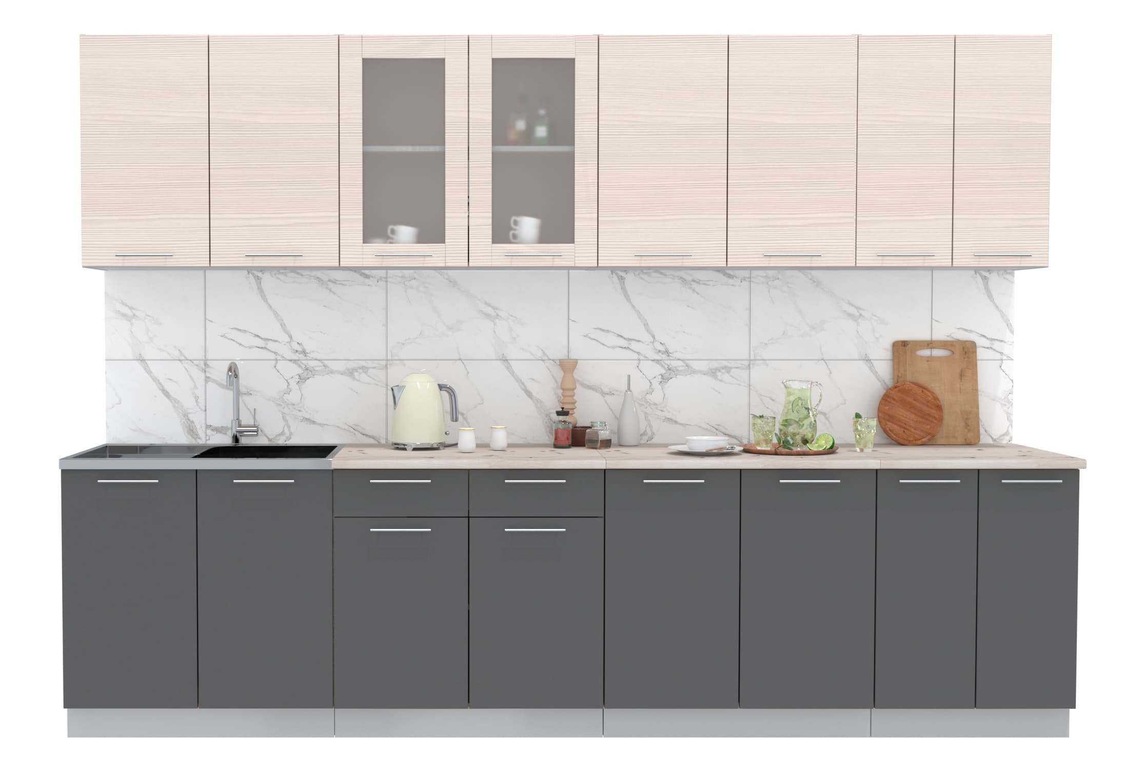 ГОТОВАЯ КУХНЯ МИЛА 3,0 (ВУДЛАЙН КРЕМОВЫЙ/ АНТРАЦИТ) - Yuta.by