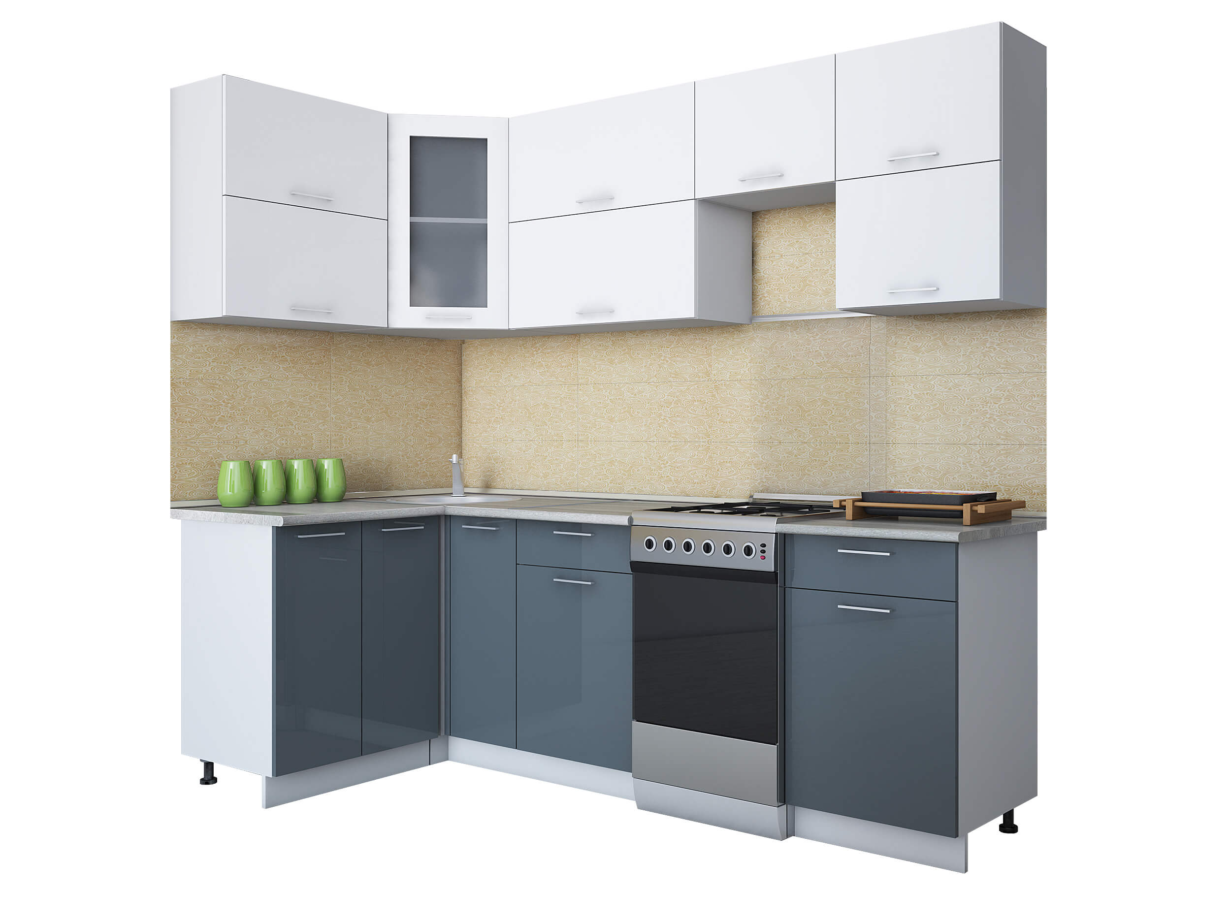ГОТОВАЯ КУХНЯ МИЛА ГЛОСС 50-12Х24 (БЕЛЫЙ/ АСФАЛЬТ) - Yuta.by