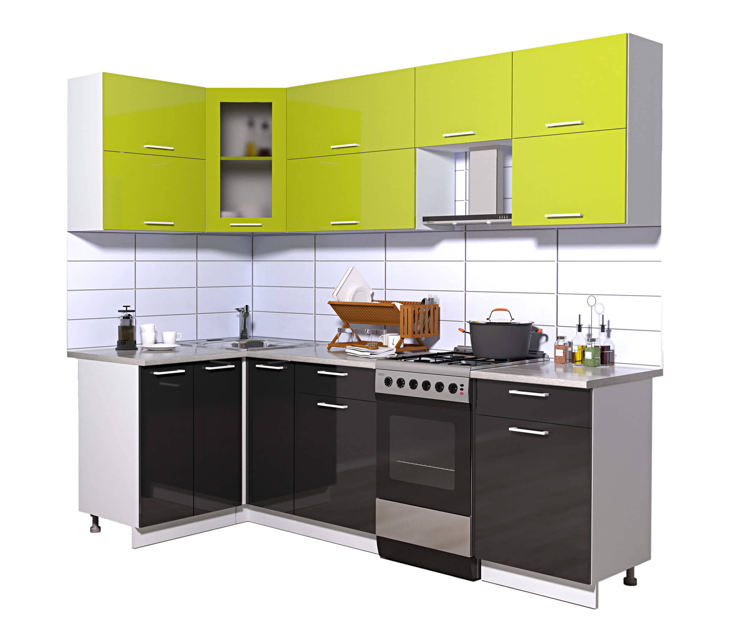 ГОТОВАЯ КУХНЯ МИЛА ГЛОСС 50-12Х24 (ЯБЛОКО/ ЧЕРНЫЙ) - Yuta.by