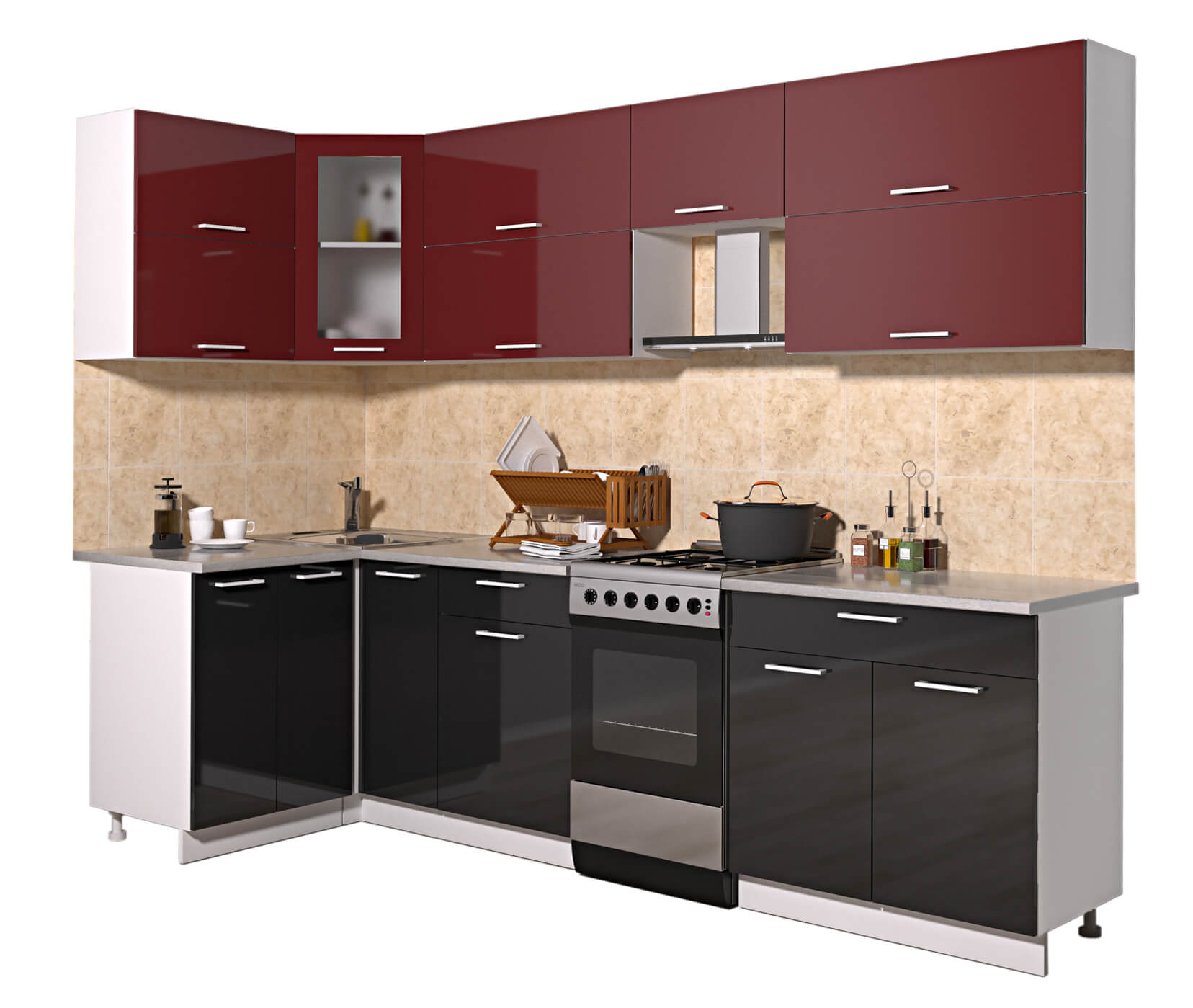 ГОТОВАЯ КУХНЯ МИЛА ГЛОСС 50-12Х27 (БОРДОВЫЙ/ ЧЕРНЫЙ) - Yuta.by