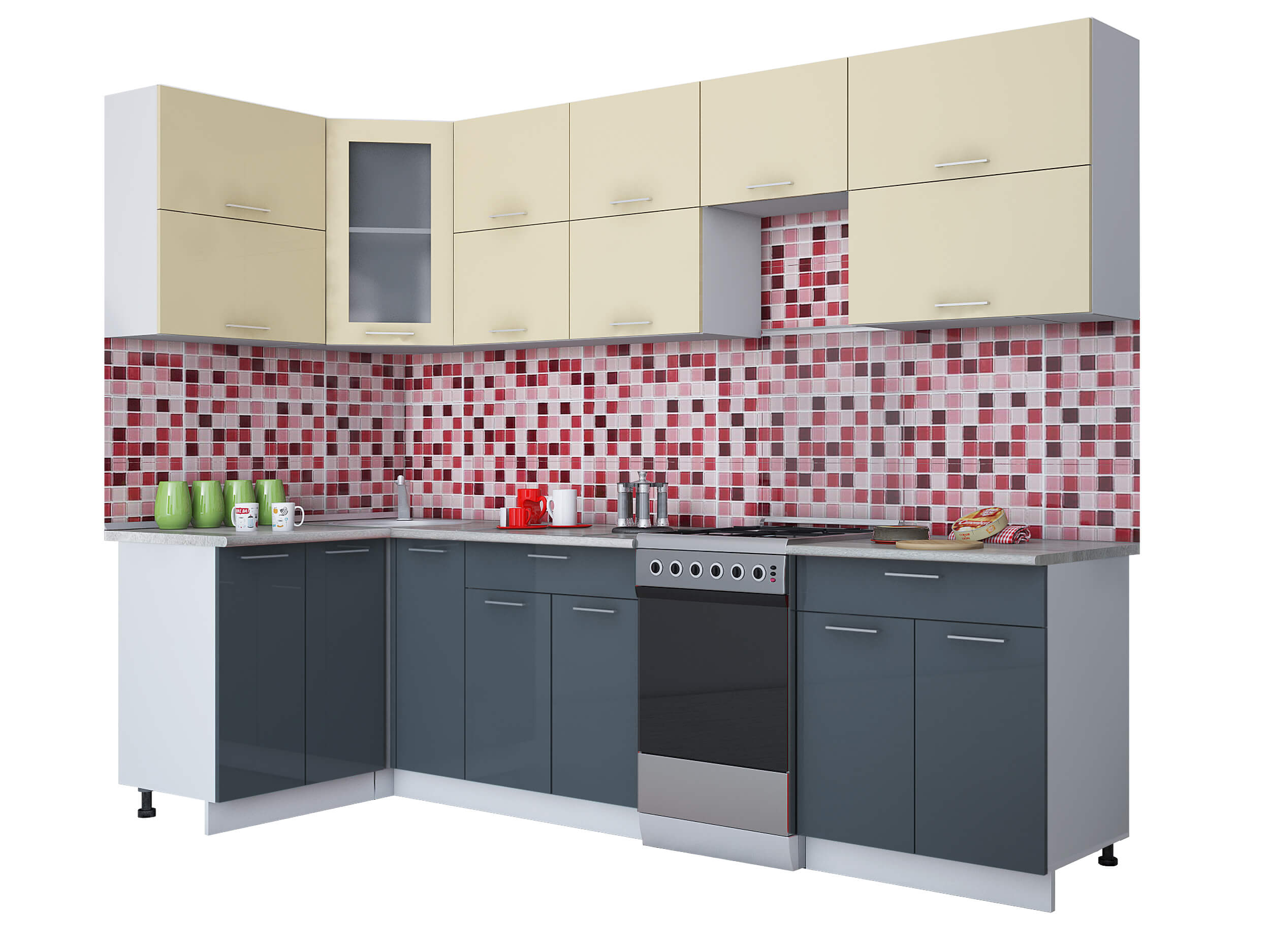 ГОТОВАЯ КУХНЯ МИЛА ГЛОСС 50-12Х28 (ВАНИЛЬ/ АСФАЛЬТ) - Yuta.by