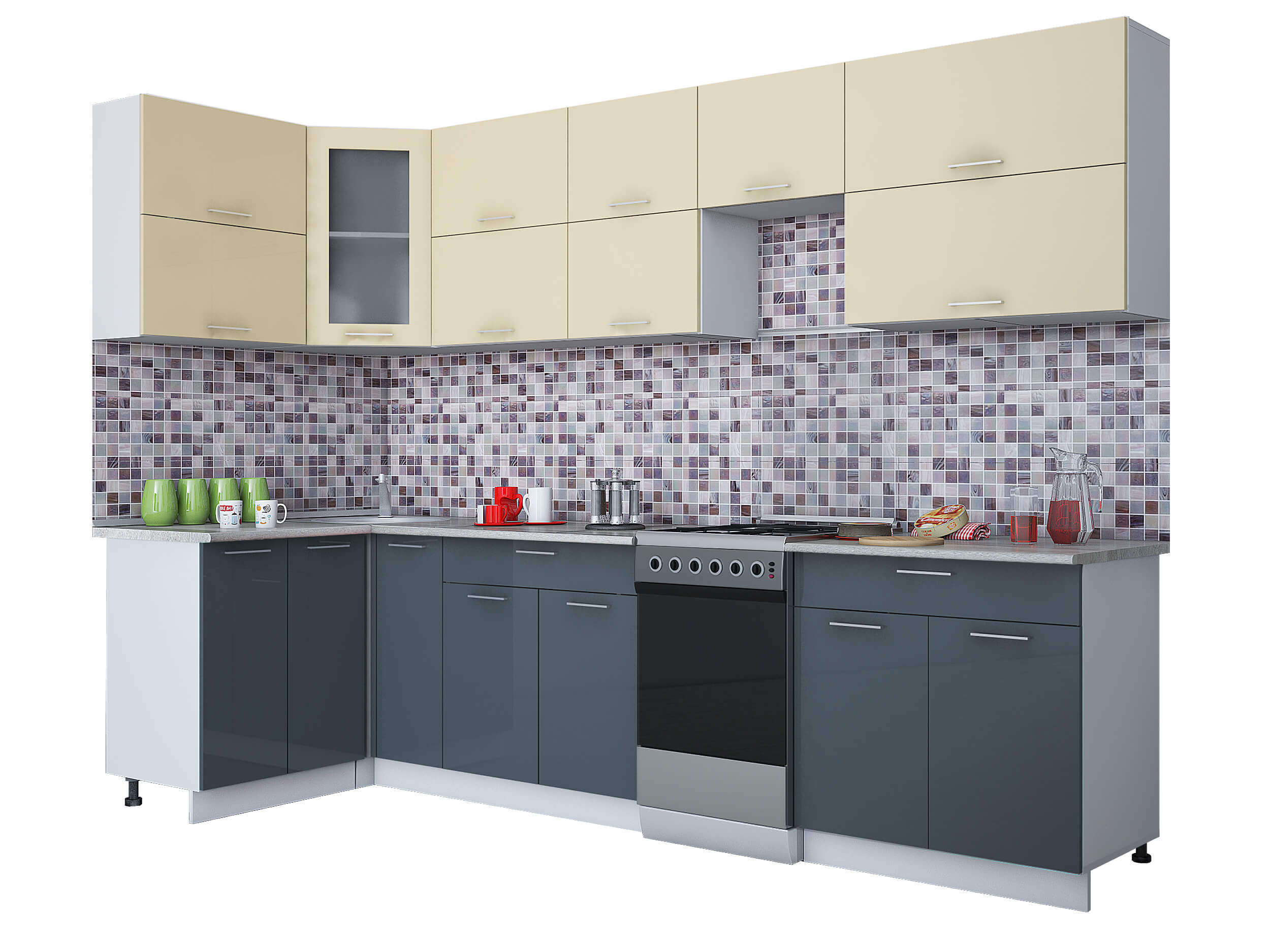 ГОТОВАЯ КУХНЯ МИЛА ГЛОСС 50-12Х30 (ВАНИЛЬ/ АСФАЛЬТ) - Yuta.by