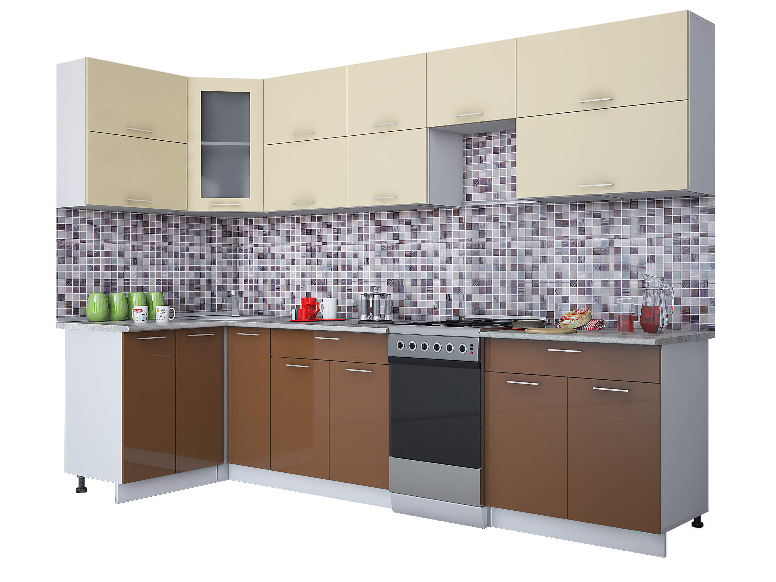 ГОТОВАЯ КУХНЯ МИЛА ГЛОСС 50-12Х30 (ВАНИЛЬ/ ШОКОЛАД)