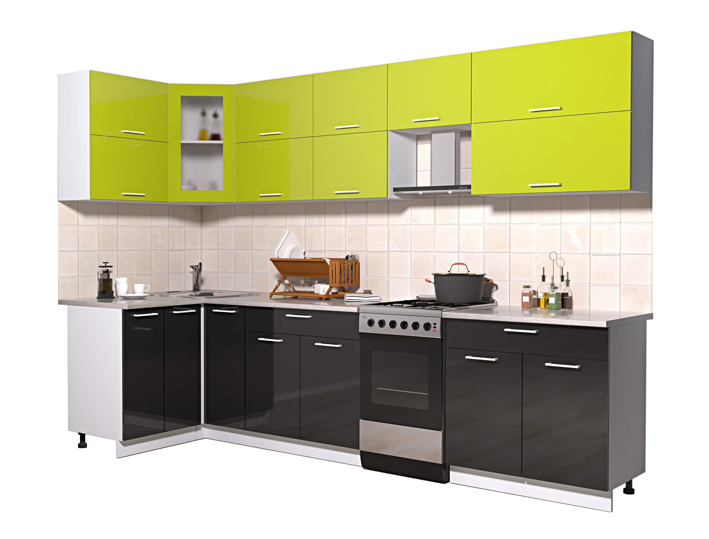 ГОТОВАЯ КУХНЯ МИЛА ГЛОСС 50-12Х30 (ЯБЛОКО/ ЧЕРНЫЙ) - Yuta.by