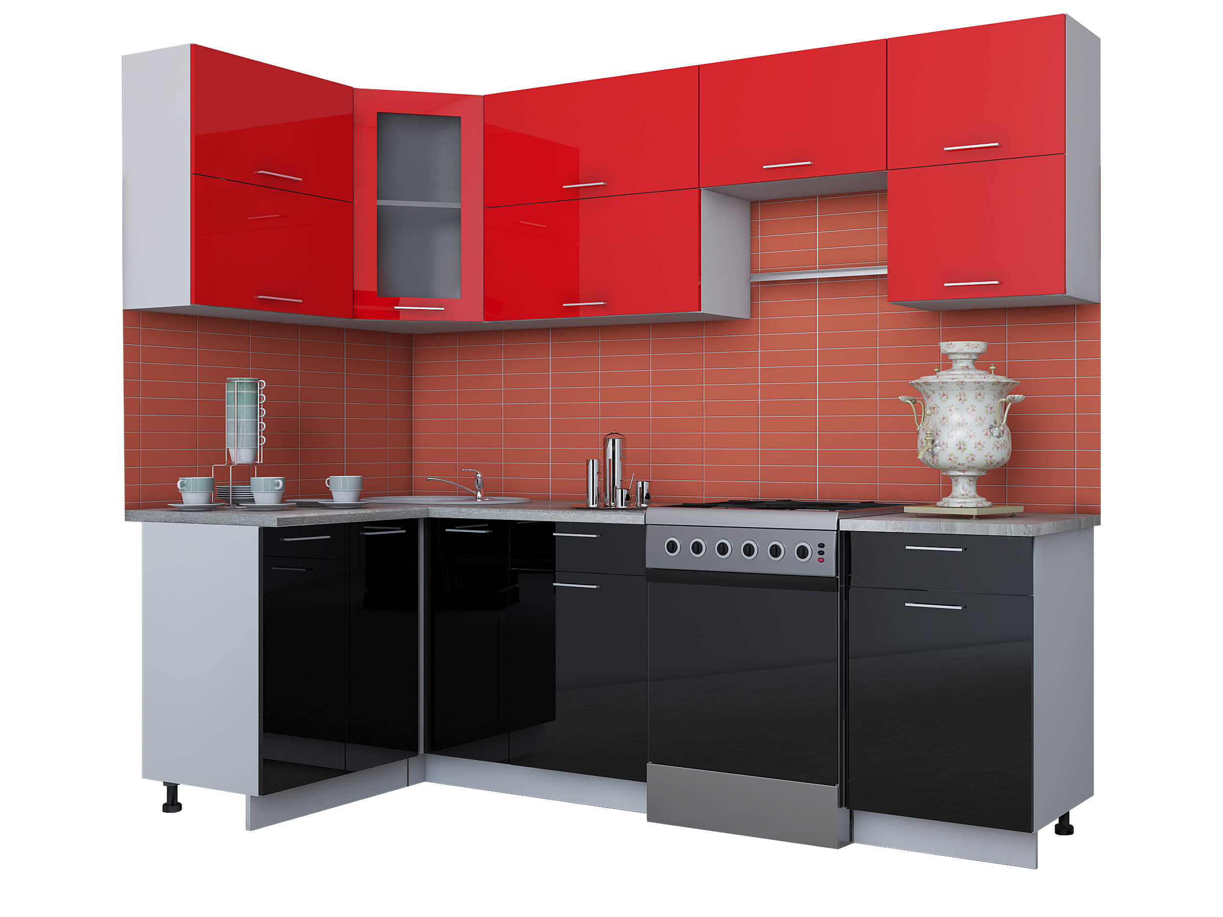 ГОТОВАЯ КУХНЯ МИЛА ГЛОСС 60-12Х25 (КРАСНЫЙ/ ЧЕРНЫЙ) - Yuta.by