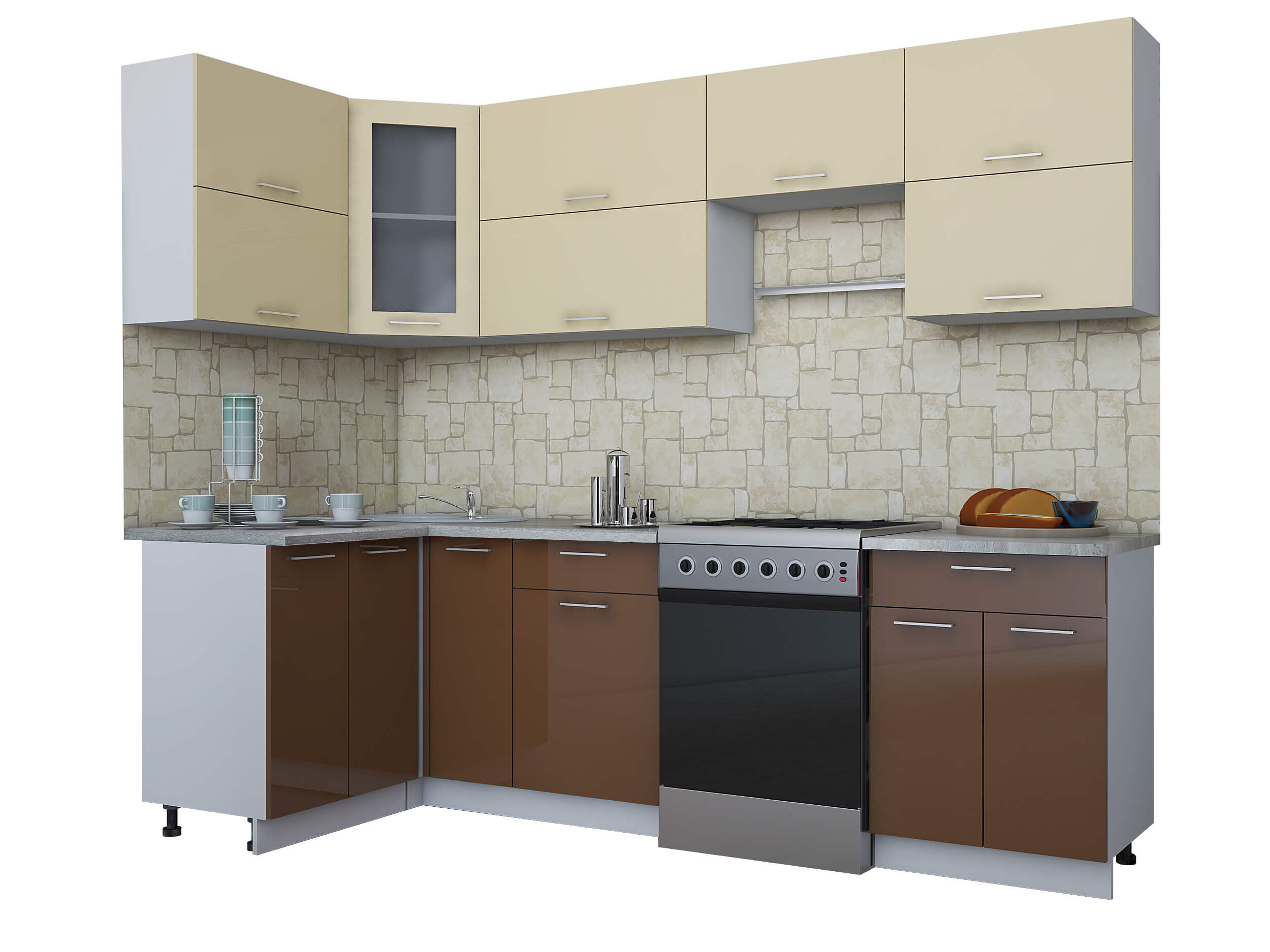ГОТОВАЯ КУХНЯ МИЛА ГЛОСС 60-12Х26 (ВАНИЛЬ/ ШОКОЛАД) - Yuta.by