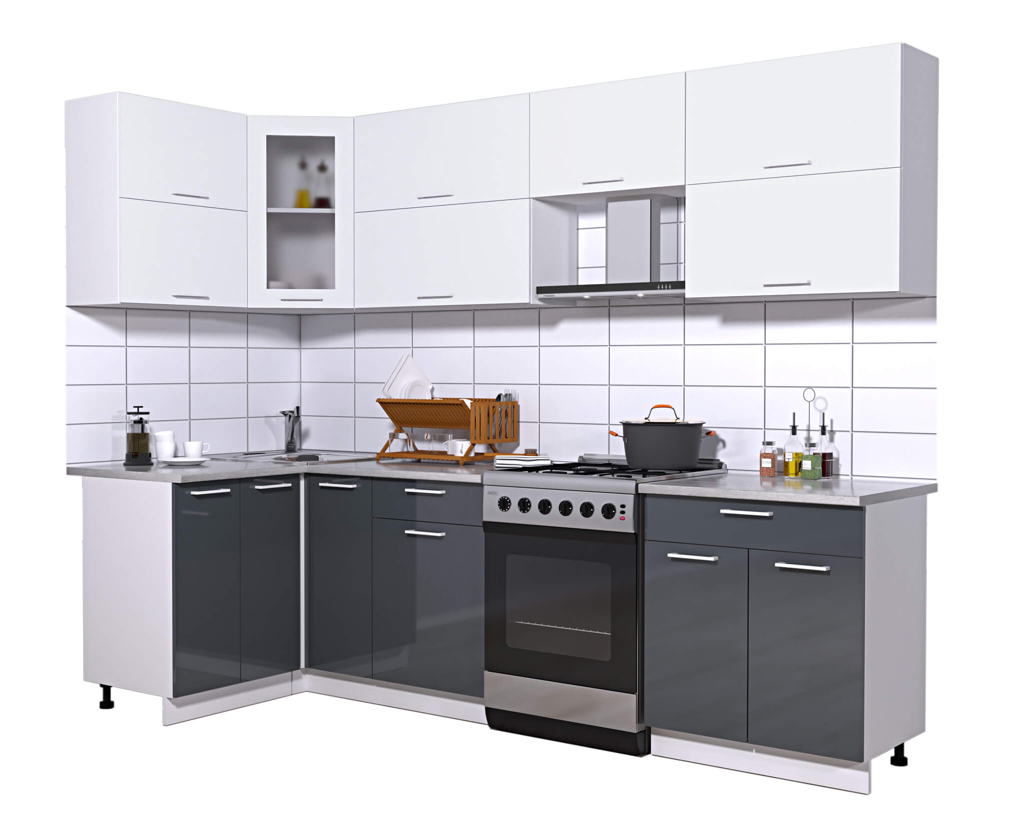 ГОТОВАЯ КУХНЯ МИЛА ГЛОСС 60-12Х27 (БЕЛЫЙ/ АСФАЛЬТ) - Yuta.by