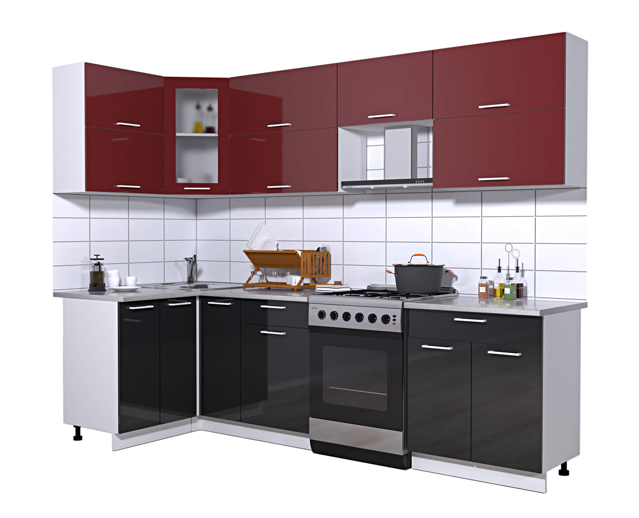 ГОТОВАЯ КУХНЯ МИЛА ГЛОСС 60-12Х27 (БОРДОВЫЙ/ ЧЕРНЫЙ) - Yuta.by