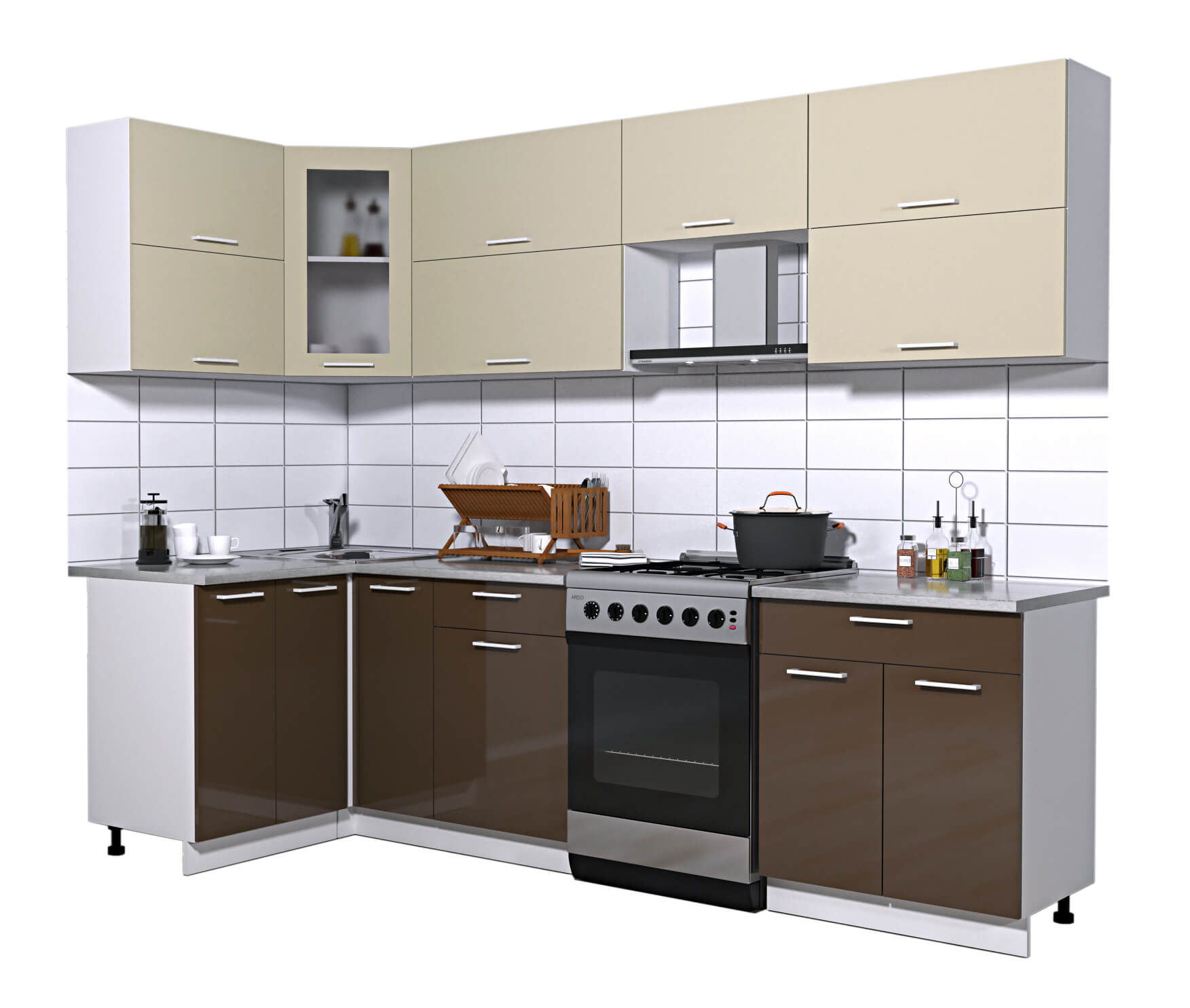 ГОТОВАЯ КУХНЯ МИЛА ГЛОСС 60-12Х27 (ВАНИЛЬ/ ШОКОЛАД) - Yuta.by
