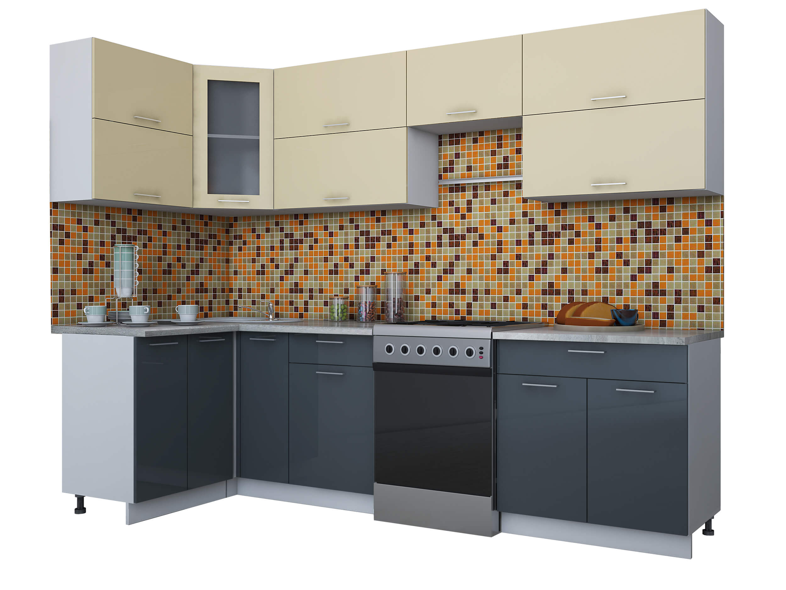 ГОТОВАЯ КУХНЯ МИЛА ГЛОСС 60-12Х28 (ВАНИЛЬ/ АСФАЛЬТ) - Yuta.by