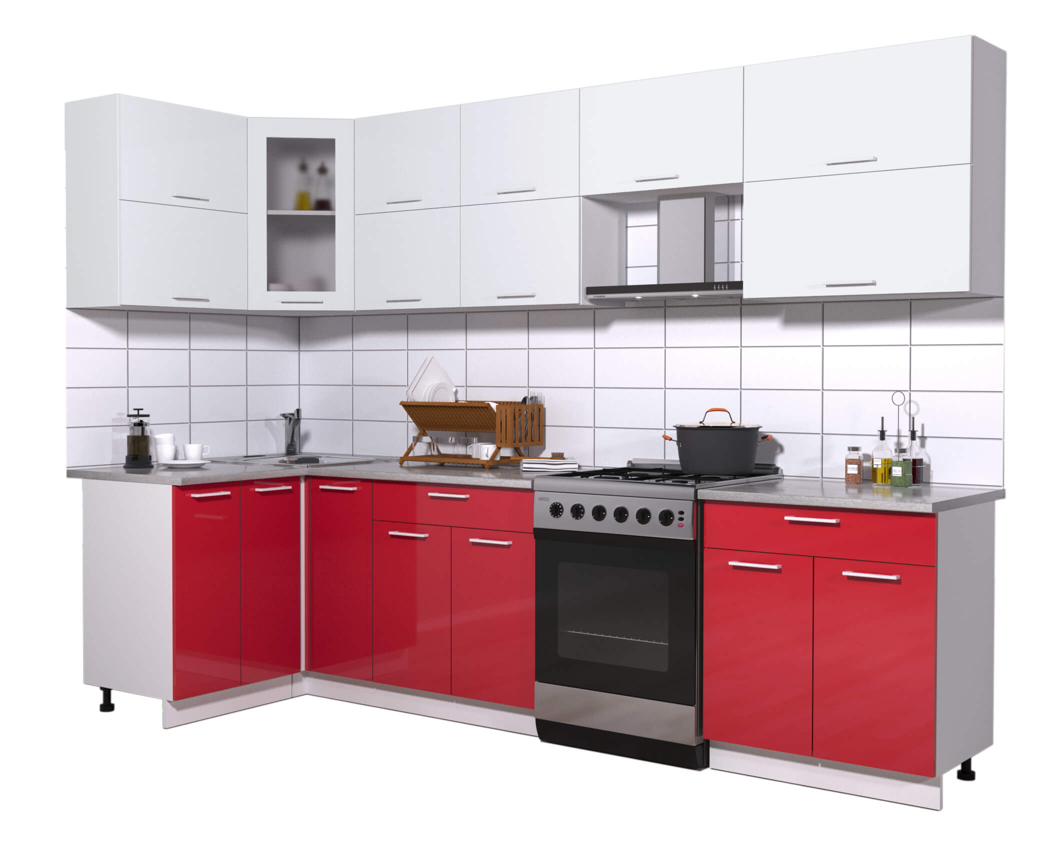 ГОТОВАЯ КУХНЯ МИЛА ГЛОСС 60-12Х29 (БЕЛЫЙ/ КРАСНЫЙ) - Yuta.by