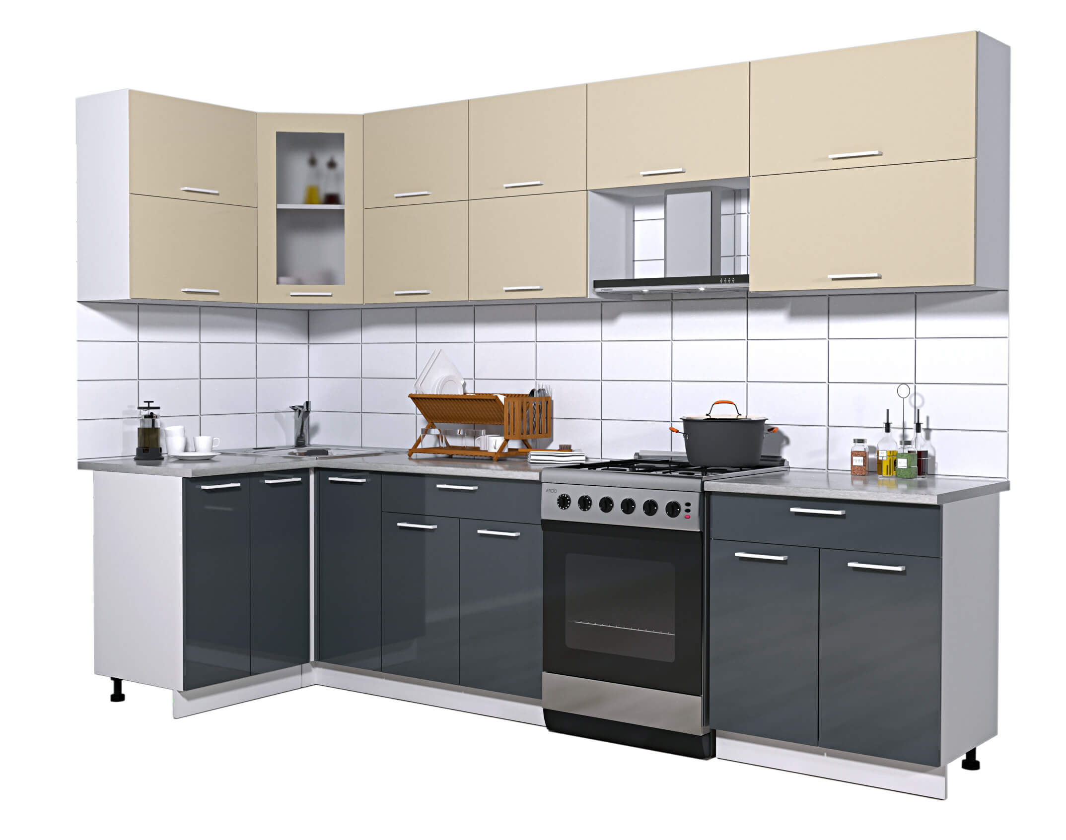 ГОТОВАЯ КУХНЯ МИЛА ГЛОСС 60-12Х29 (ВАНИЛЬ/ АСФАЛЬТ) - Yuta.by