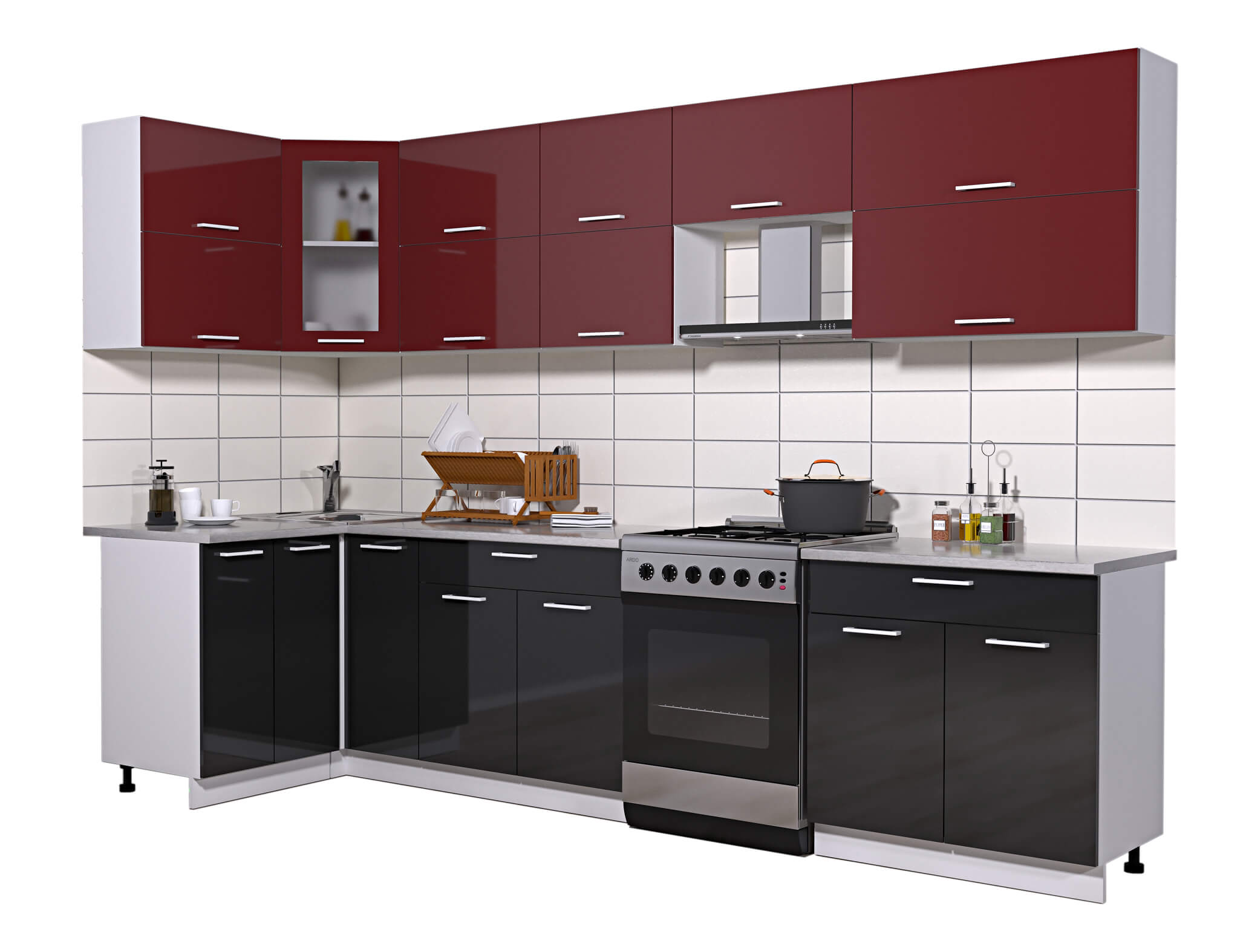 ГОТОВАЯ КУХНЯ МИЛА ГЛОСС 60-12Х31 (БОРДОВЫЙ/ ЧЕРНЫЙ) - Yuta.by
